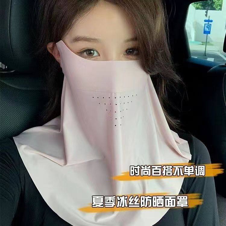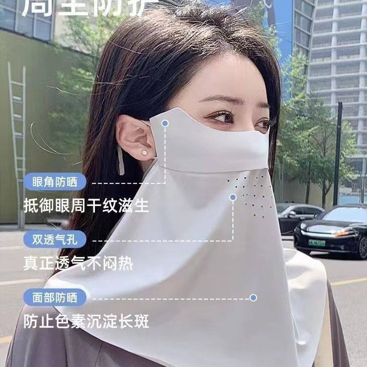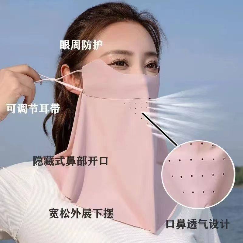 夏季户外防晒透气口鼻罩遮全脸护颈冰丝薄款面纱遮阳面罩口罩骑行