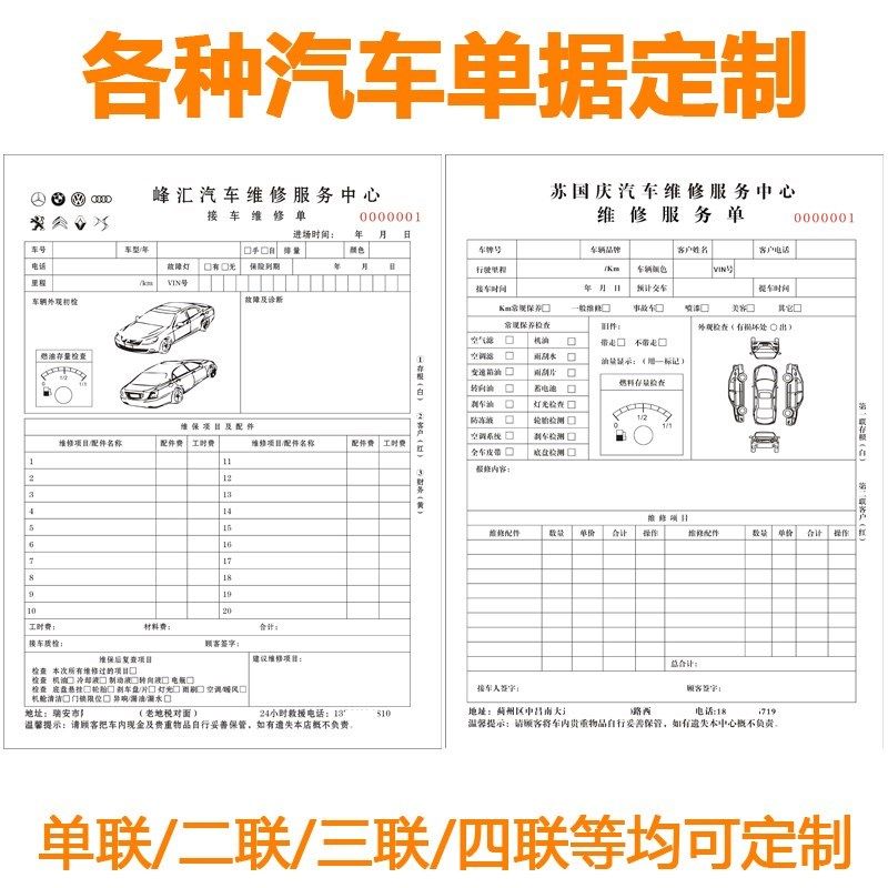 汽车维修单服务单接车单定做二联汽车修理厂维修服务报价结算清单