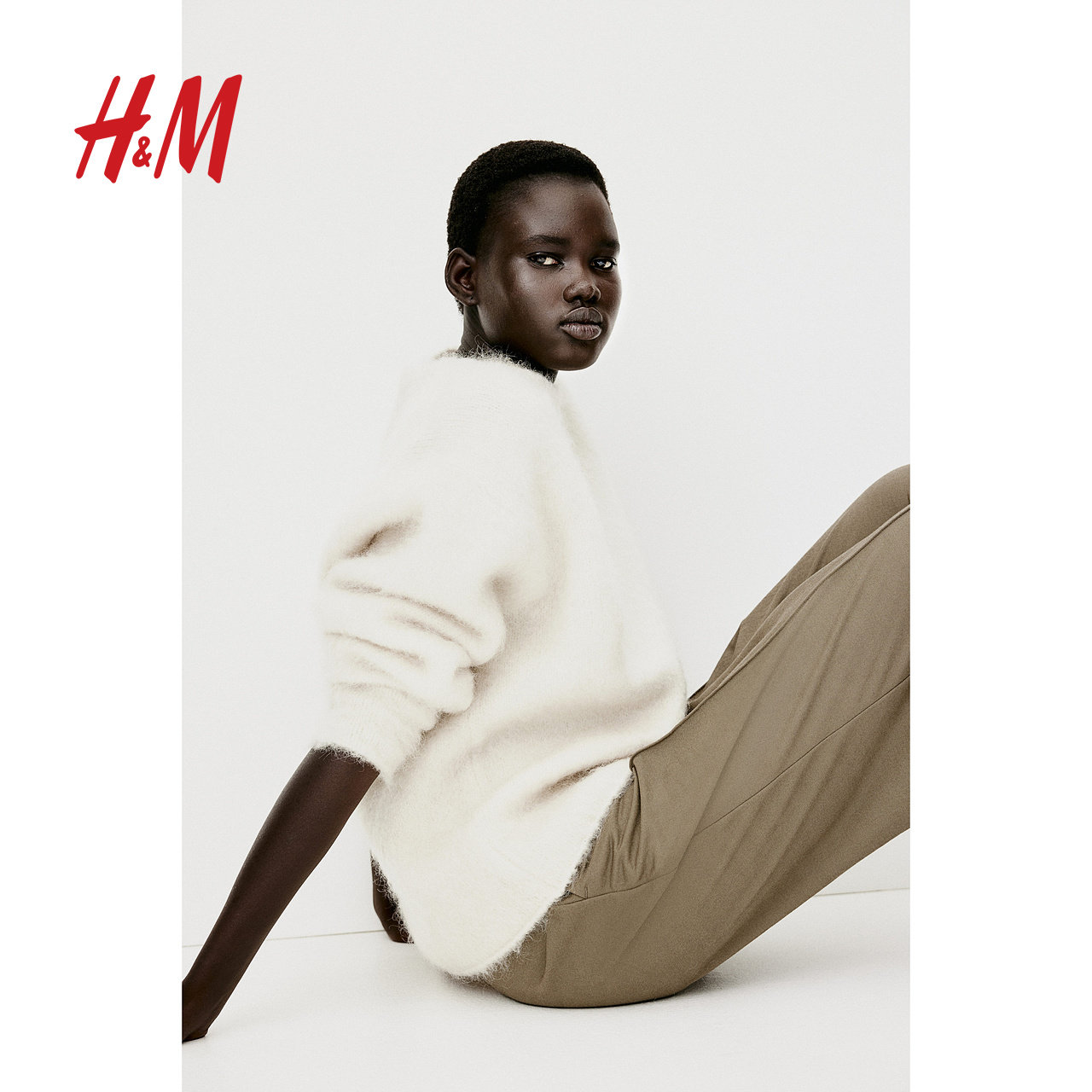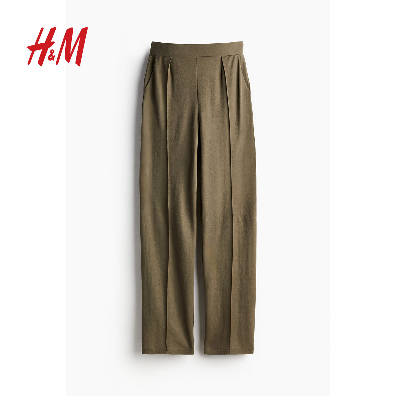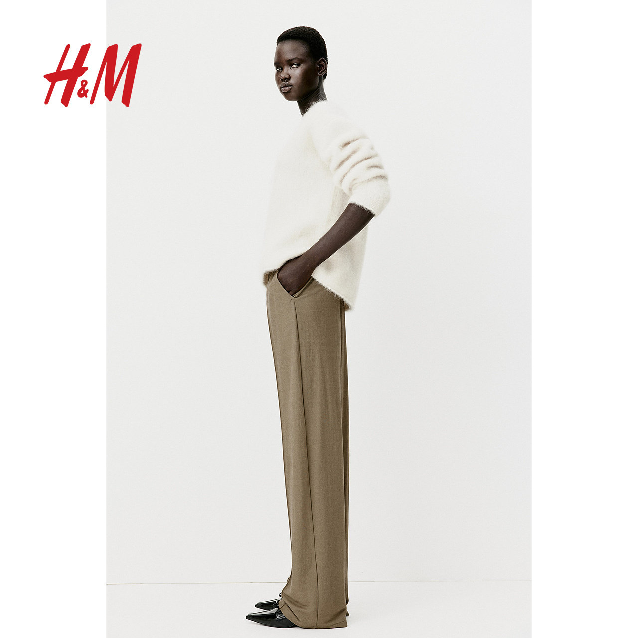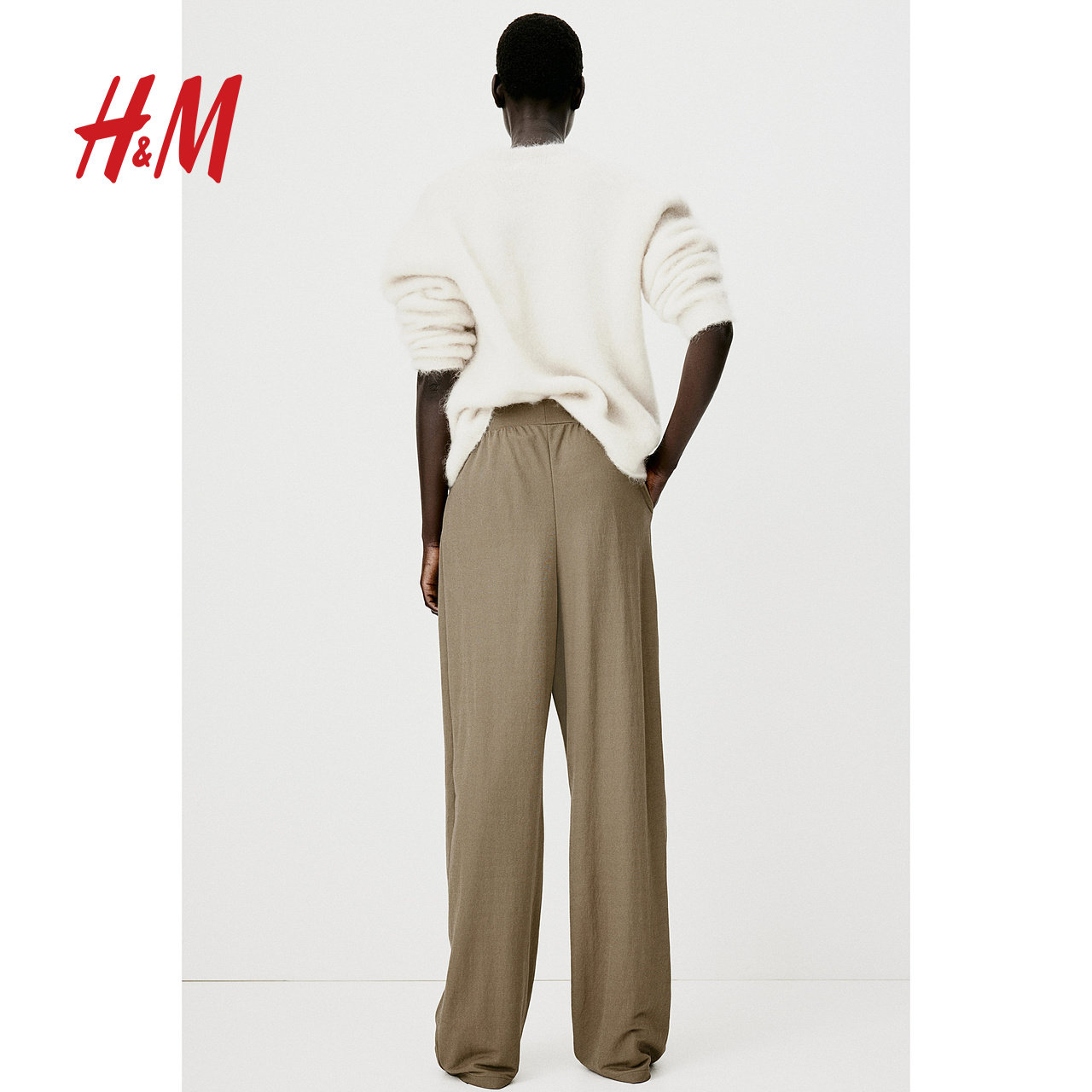 HM女装冬季裤子松紧高腰休闲通勤气质阔腿西裤1091186