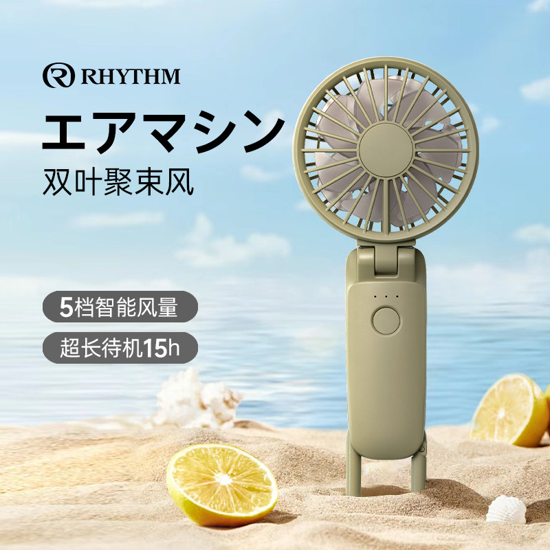 RHYTHM丽声日本品牌超静音手持风扇办公室桌面床上便携式USB充电超长续航挂脖迷你风扇2025年新款降温神器