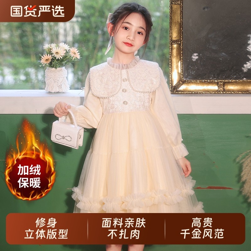 [抗菌远红外]女童连衣裙秋宝宝秋冬加绒纱裙生日礼服儿童公主裙女