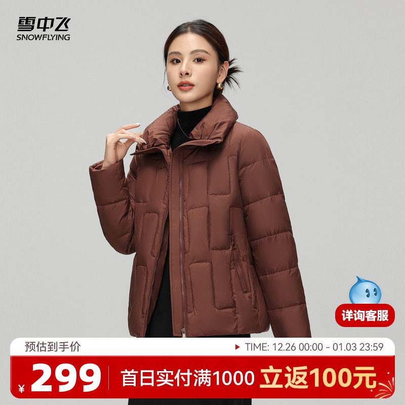 雪中飞2025冬新款女士短款羽绒服立领气质妈妈款简约休闲御寒暖