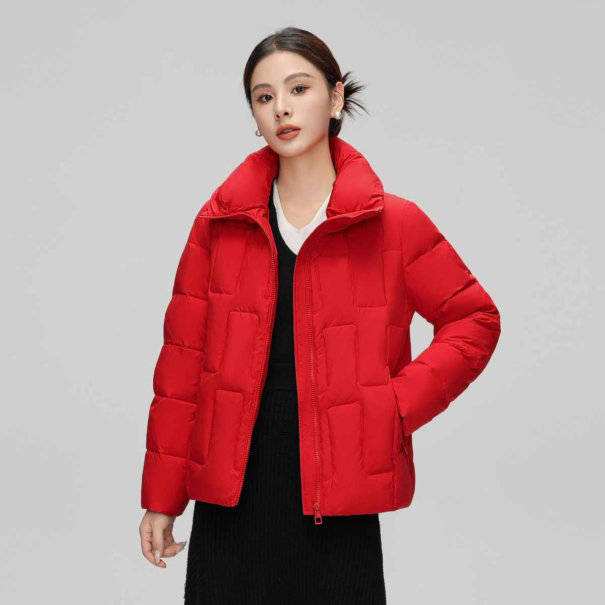 【鞠婧祎同款】鸭鸭2025年冬新款百搭短款女士纯色立领羽绒服外套