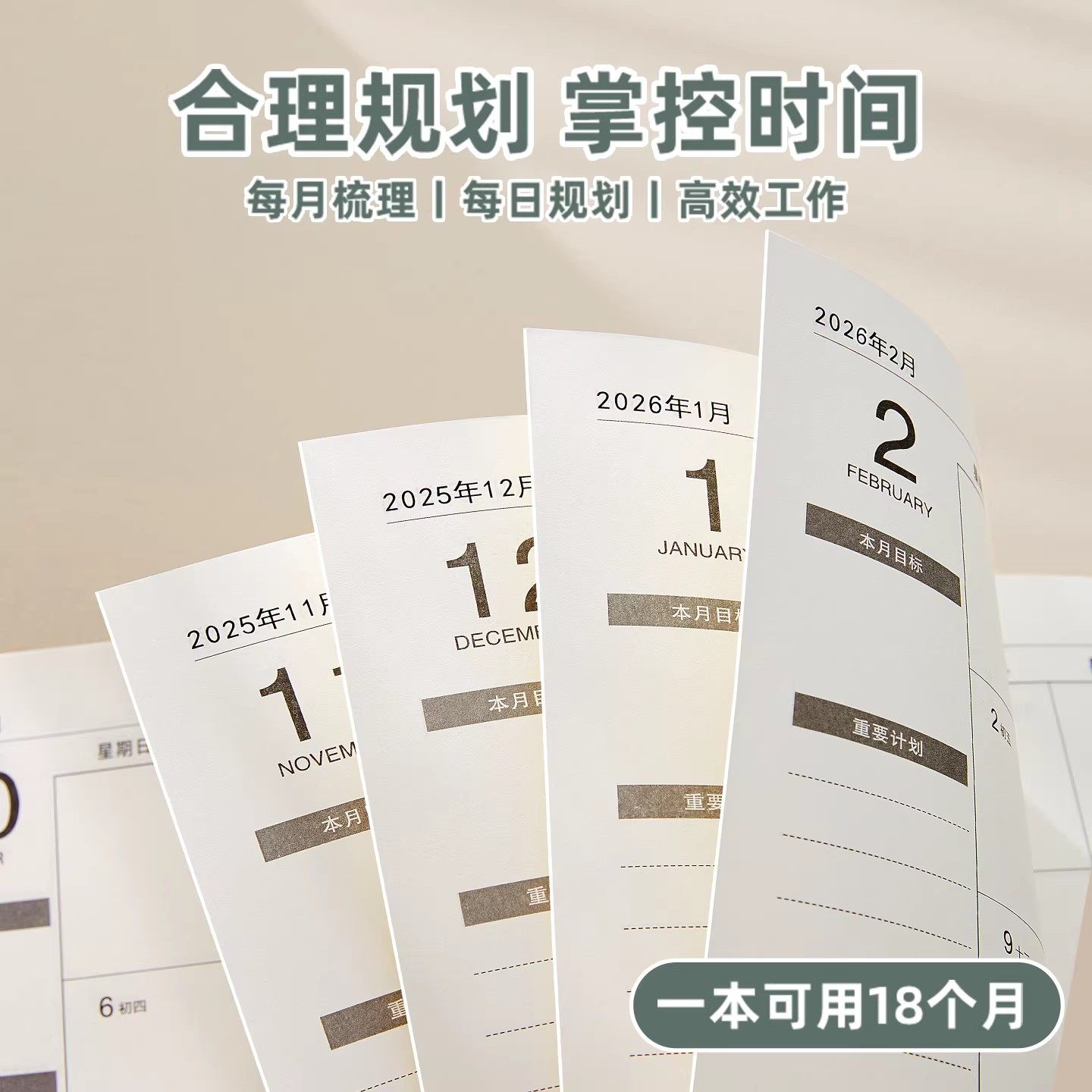 26年月计划本日程本日历记事本工作小秘书会议办公学习提升效率自律打卡表日程本记录记事笔记本本子定制