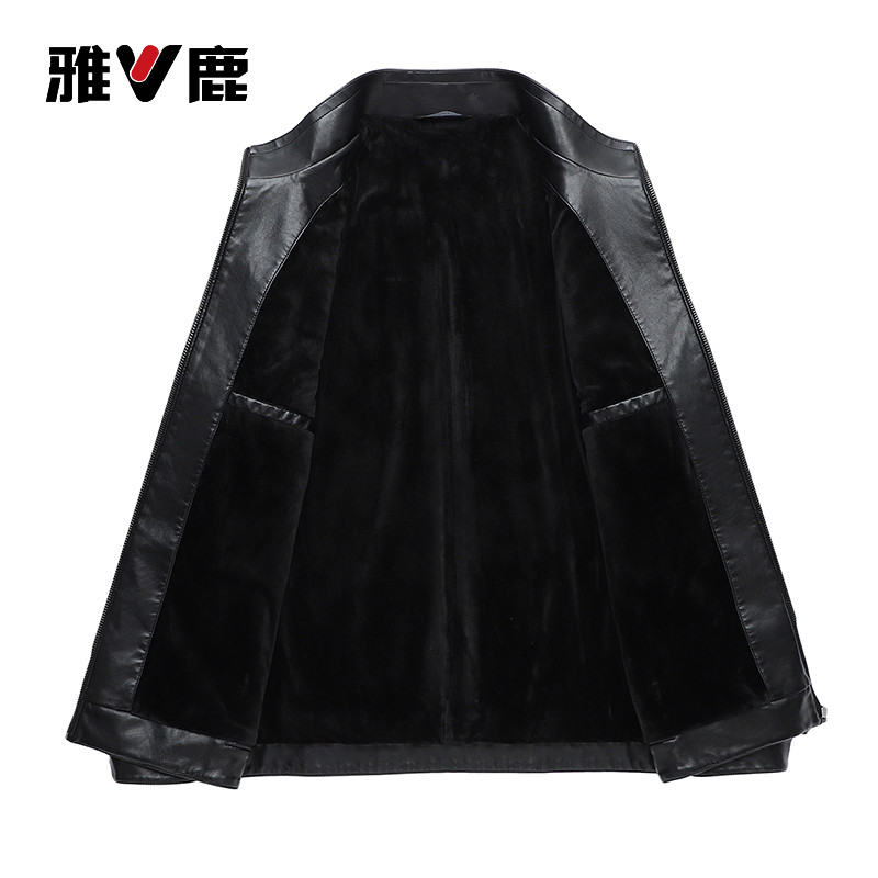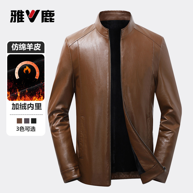 雅鹿皮衣男士2025秋季新款男装仿绵羊皮立领机车夹克加绒外套男