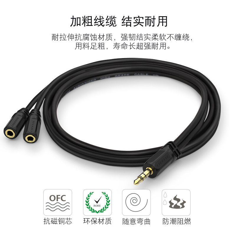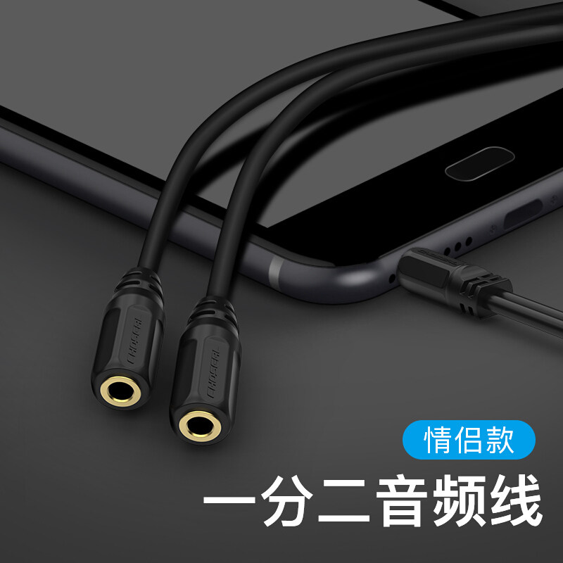 秋叶原3.5音频线延长线公母3.5mm耳机一分二电脑情侣一转二接加长