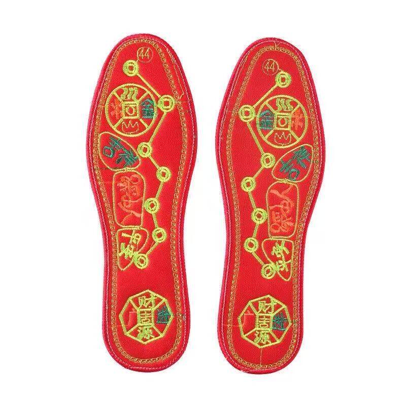 脚踏七星绣花鞋垫男女士本命年红色喜庆结婚刺绣防臭吸汗透气鸿运