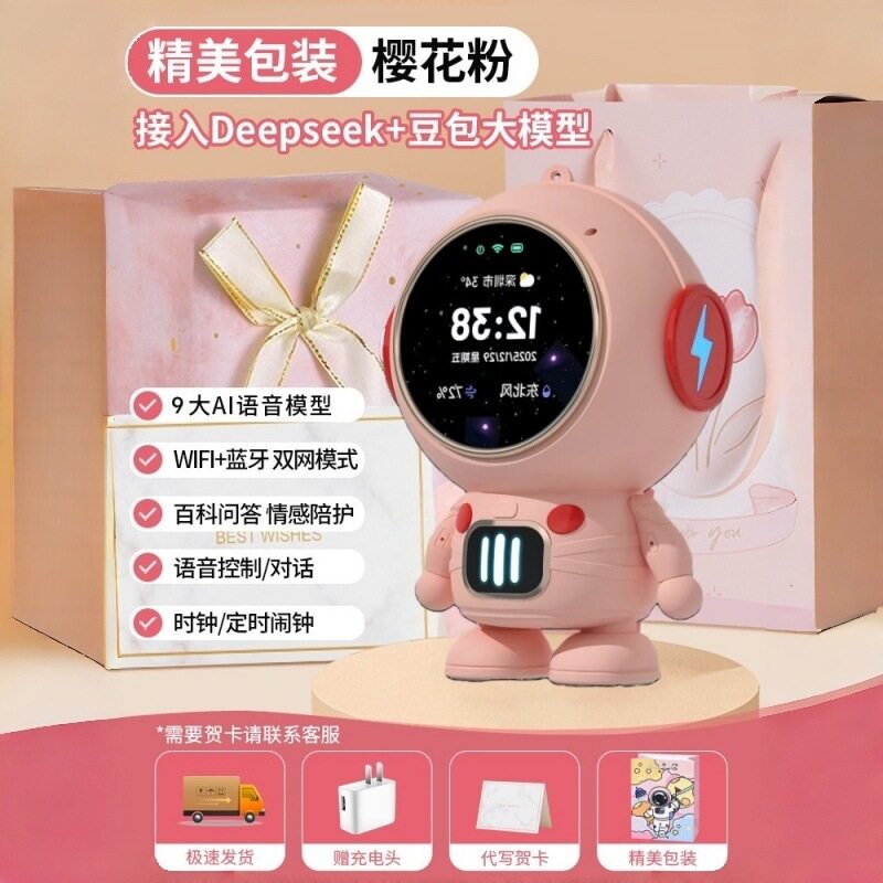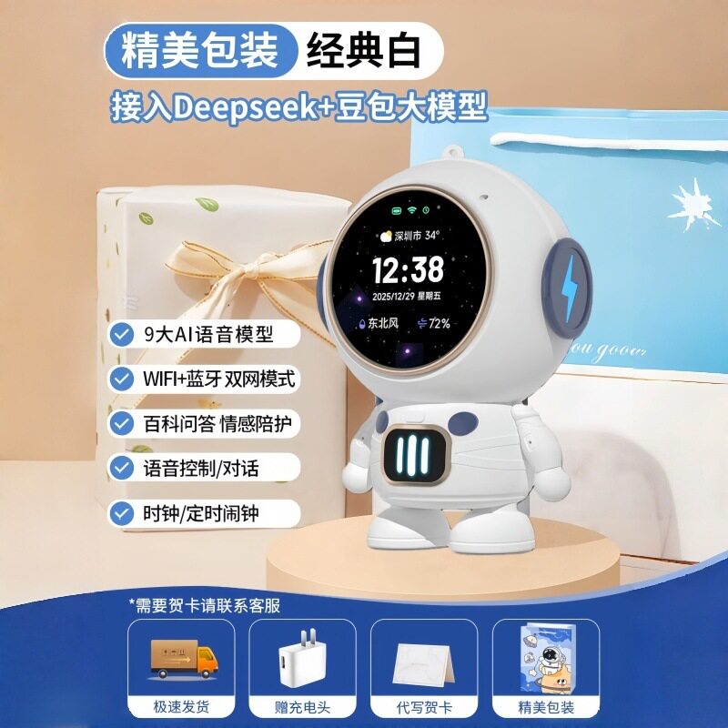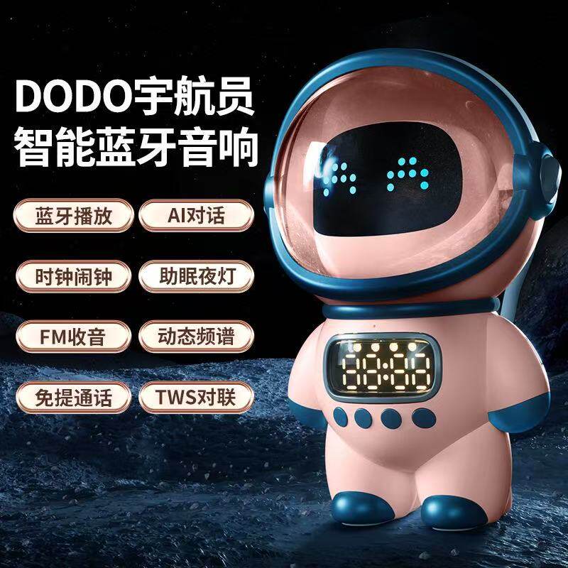 太空人智能蓝牙音响闹钟家用创意收音机TF卡FM时钟AI智能对讲音响