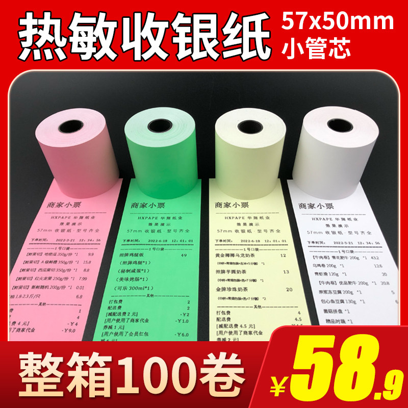 彩色打印纸57x50热敏纸58mm收银纸美团外卖卷纸超市58小票纸绿色