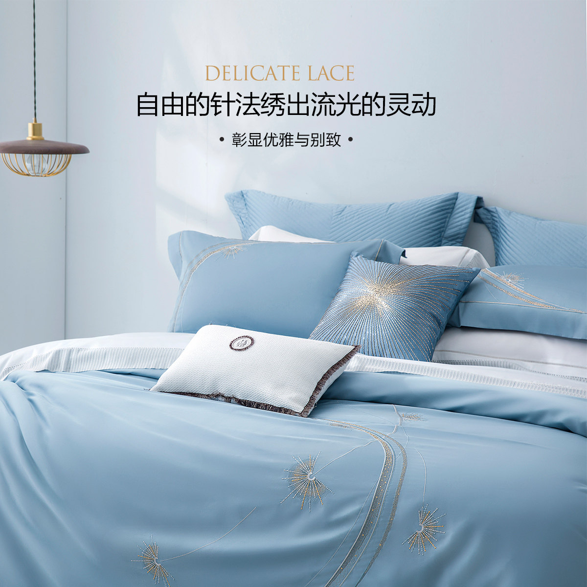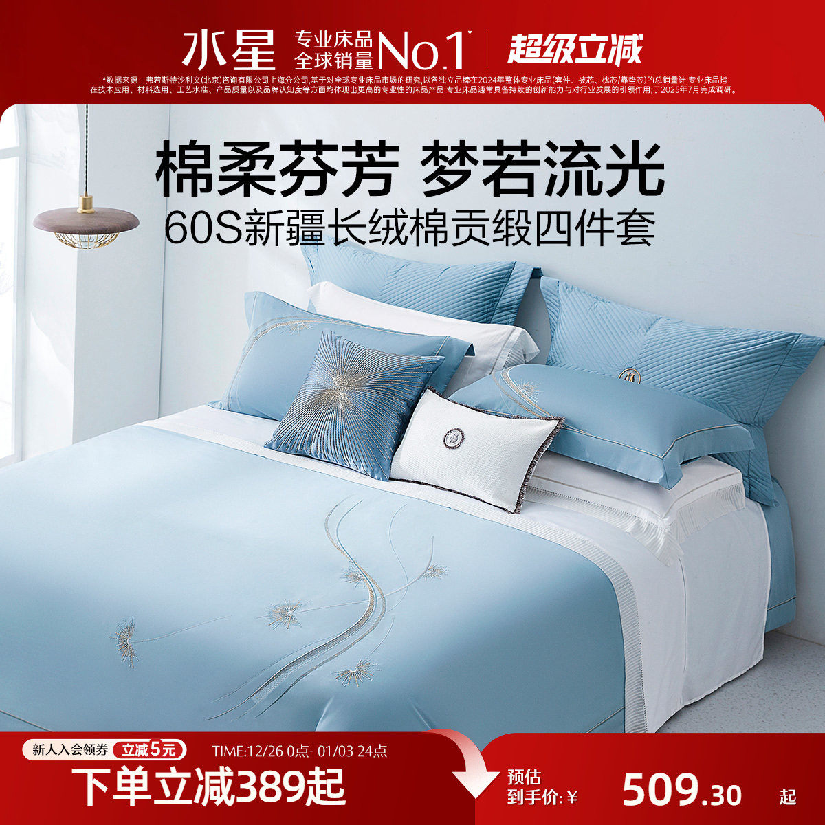 水星家纺全棉纯棉60支新疆长绒棉宿舍轻奢床单被套套件家用床品