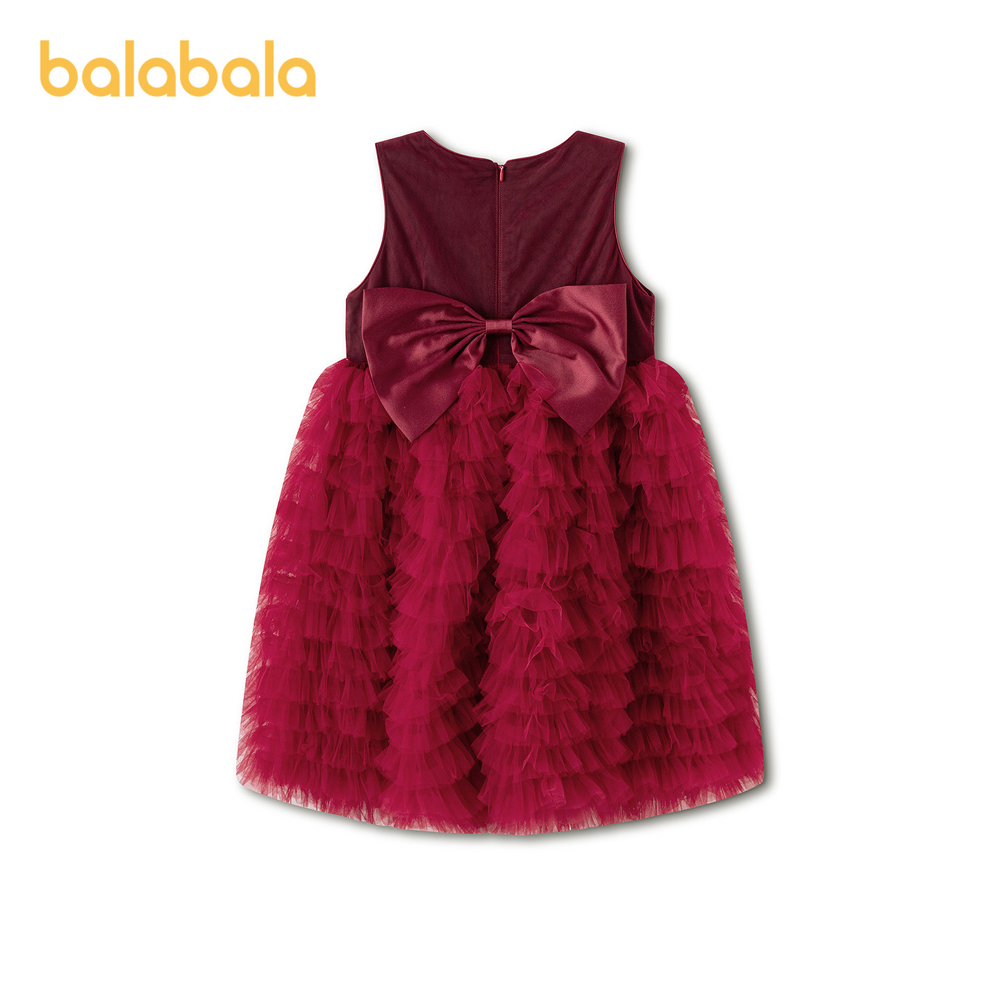 巴拉巴拉女童连衣裙宝宝拜年裙子冬装新款童装儿童红色洋气公主裙