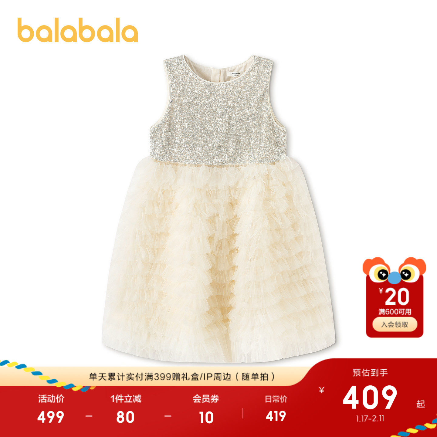 【balaOne】巴拉巴拉童装女童连衣裙2025新款春装网纱裙甜美洋气