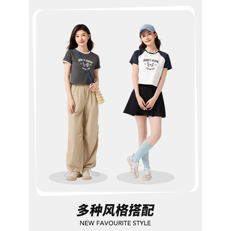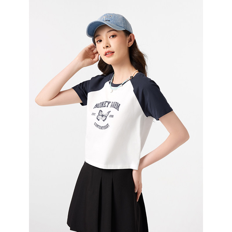 热风T恤2025年夏季新款女士插肩袖印花T恤时尚休闲百搭短袖上衣女