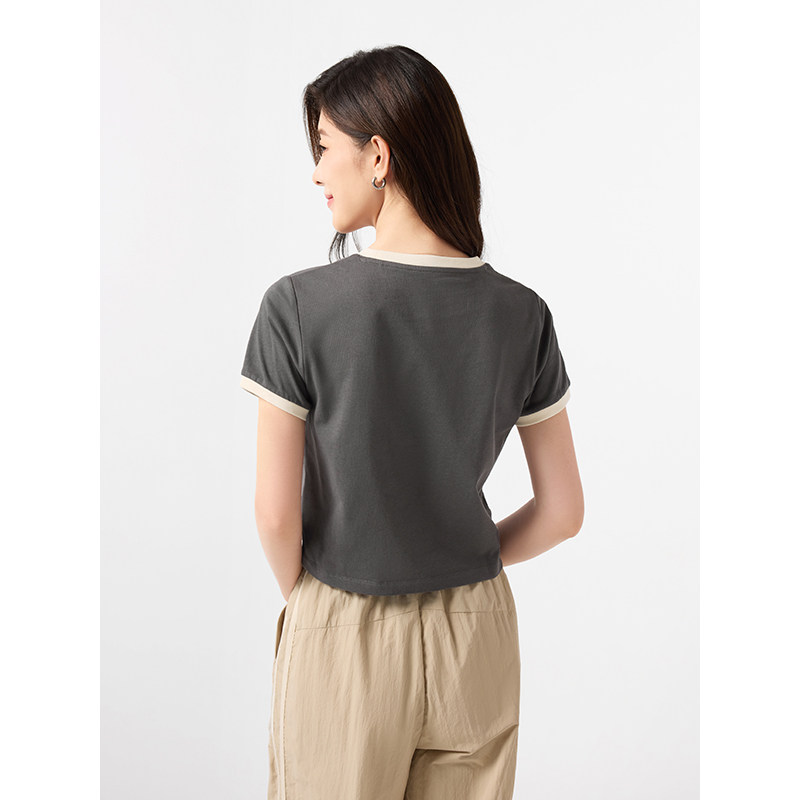 大洪官方轻氧T高级休闲简约显瘦圆领短袖T恤时尚宽松气质纯色上衣