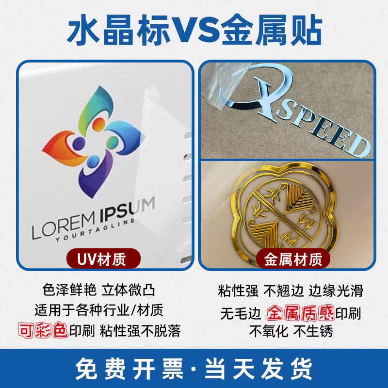 金属转印贴logo贴纸定制撕膜留字镂空立体丝移印标签透明烫金银不干胶印刷公司商标英文字母自粘刻字UV水晶标