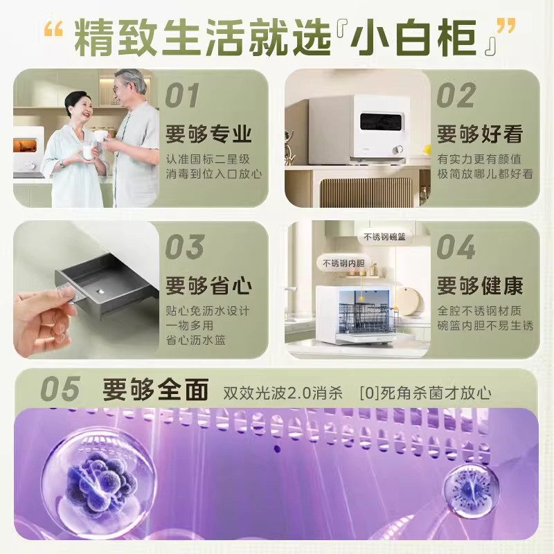美的30T03消毒柜光波2.0紫外线高温家用台式厨房餐具消毒烘干一体