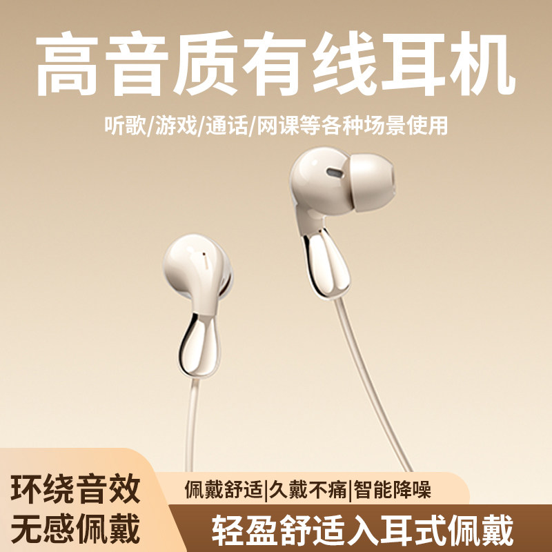 2025新款有线耳机半入耳式高音质type-c接口游戏听歌降噪手机圆口