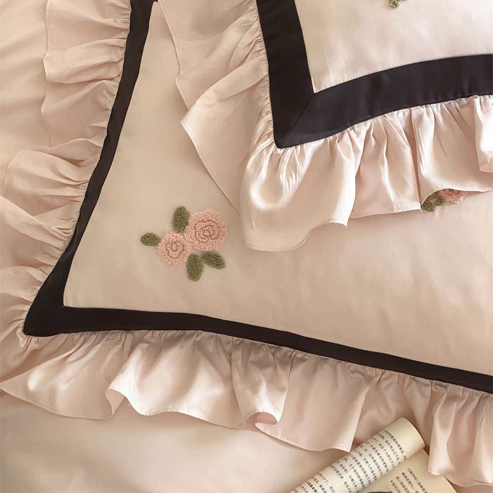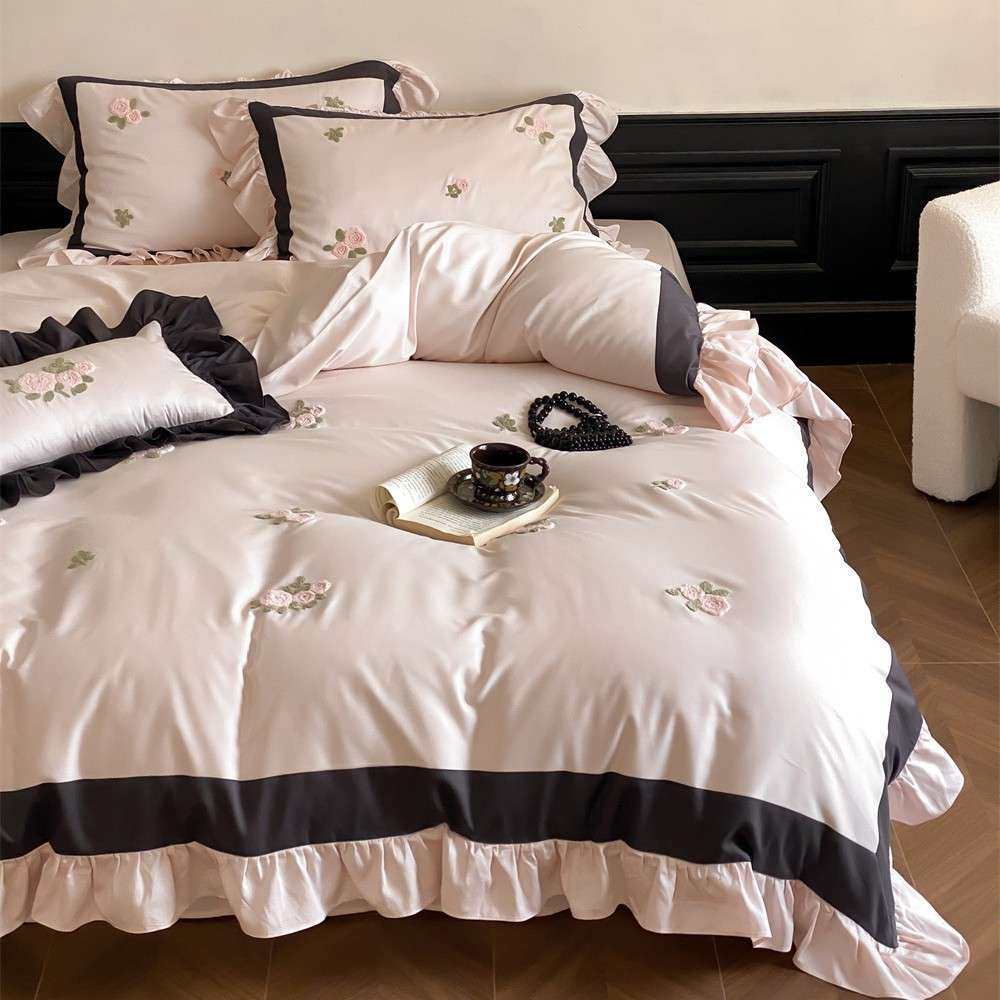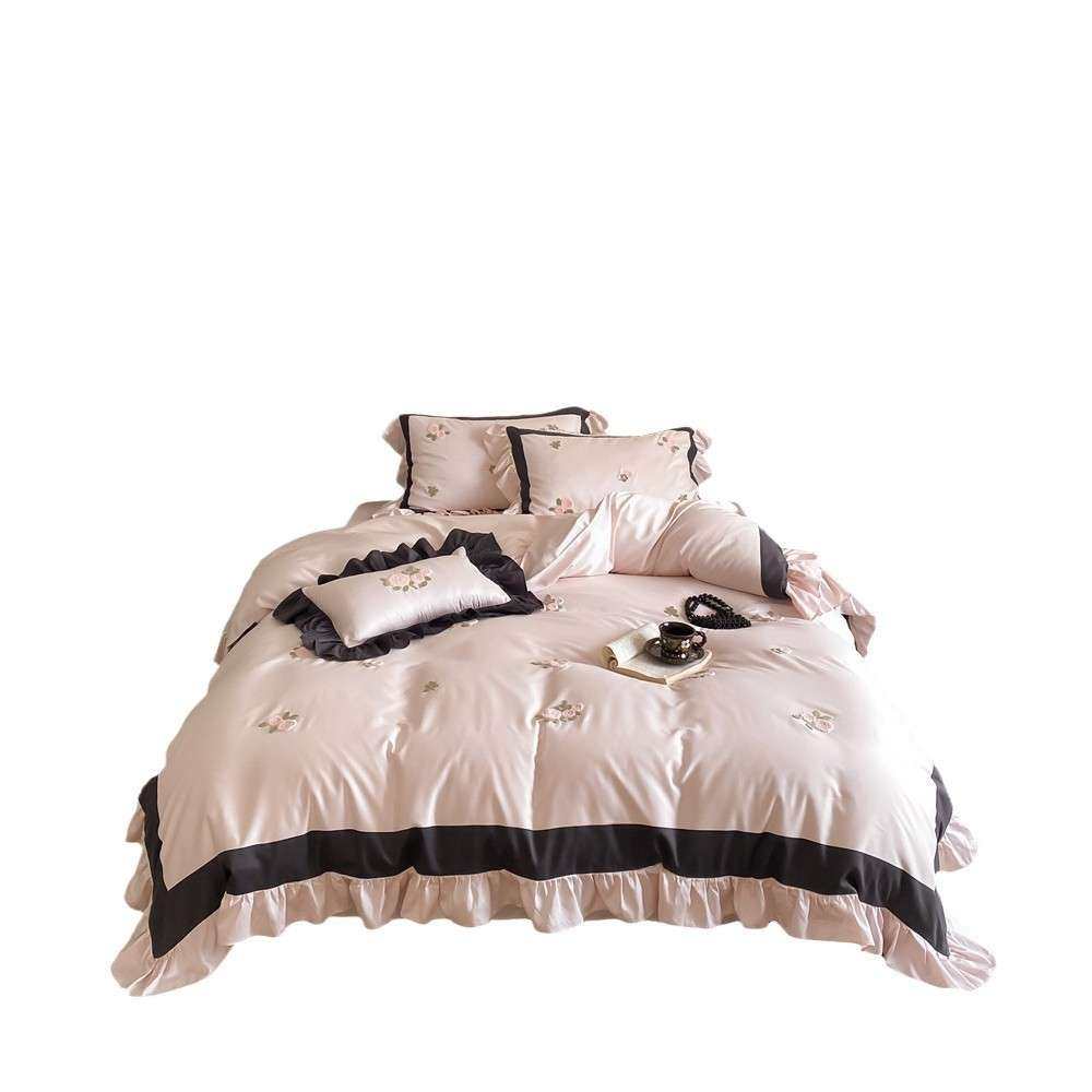 少女心荷叶花边纯棉陶瓷磨毛四件套毛巾绣加厚被套床上用品