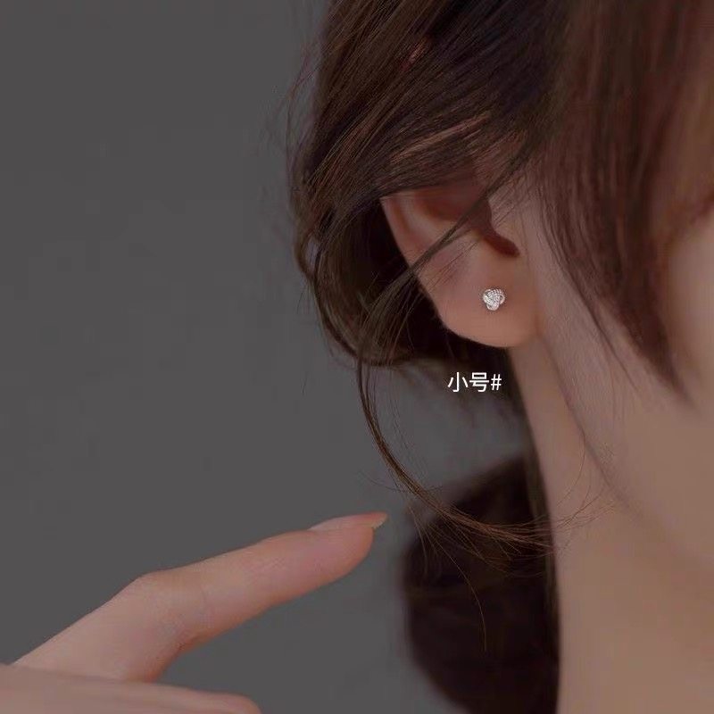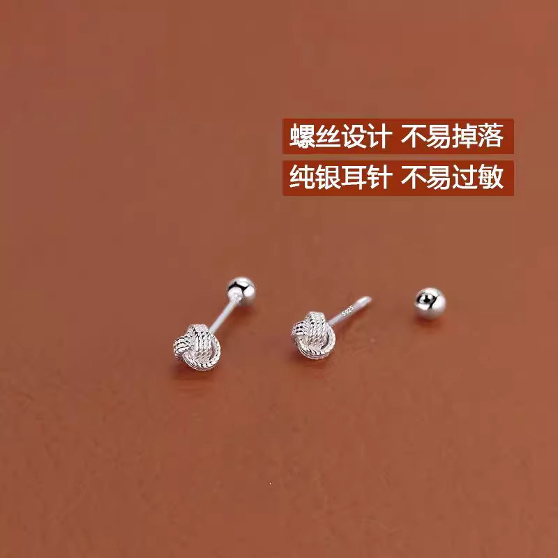 迷你如意结小耳钉养耳洞睡觉免摘螺丝拧扣耳骨钉耳饰防堵学生纯银