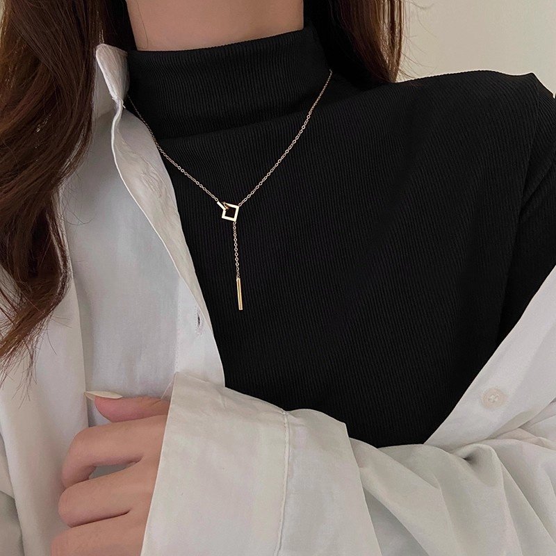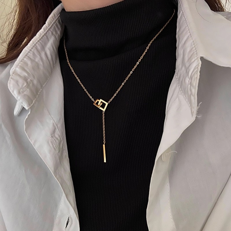 秋冬毛衣链钛钢不掉色长款高级感百搭ins风轻奢小众双层项链吊坠