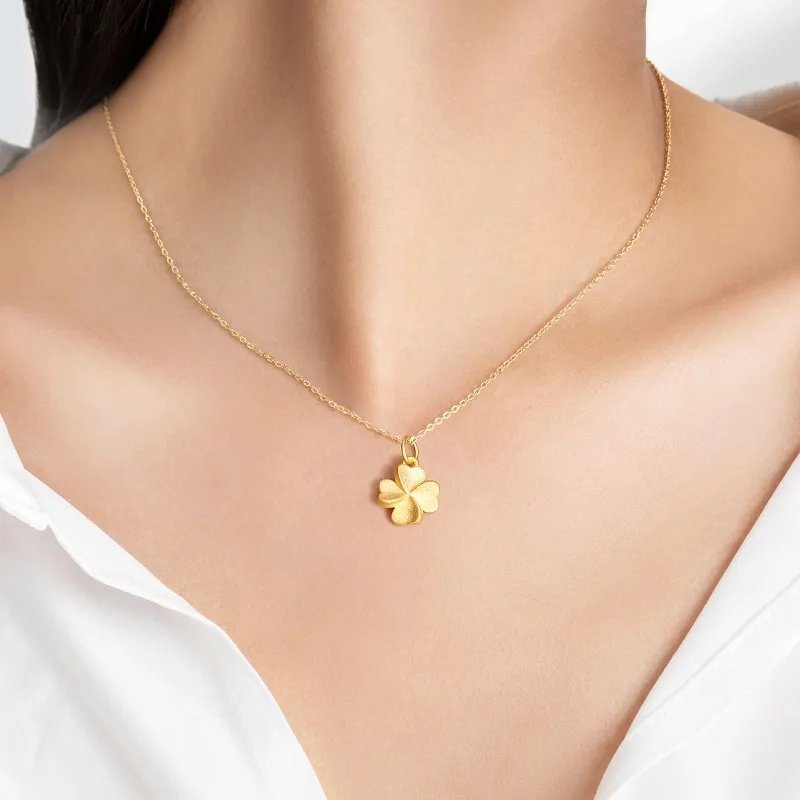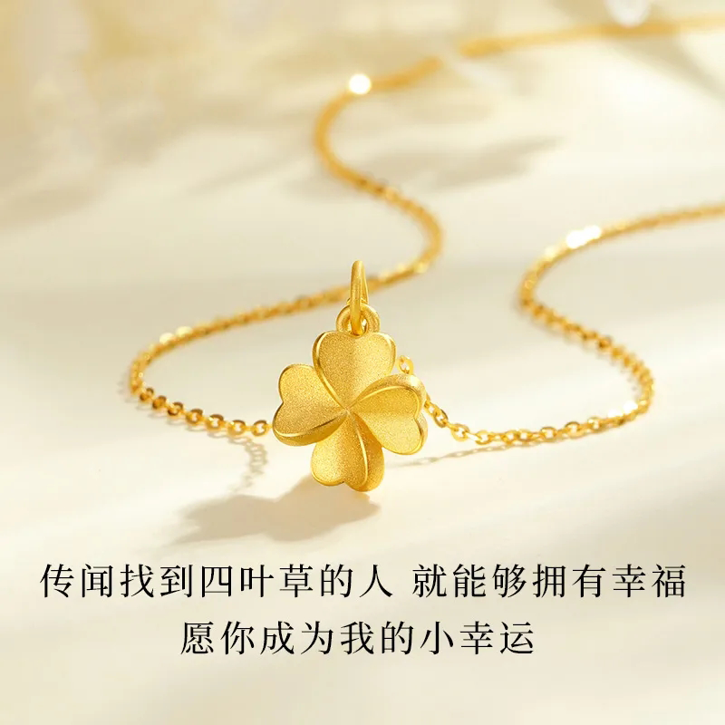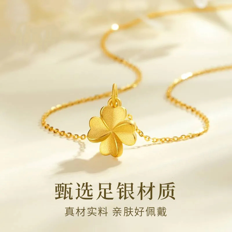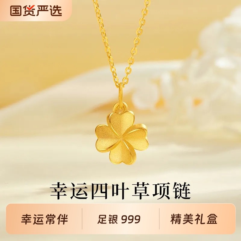 中国黄金央创足银四叶草项链女生2025新款爆款轻奢小众锁骨链S999