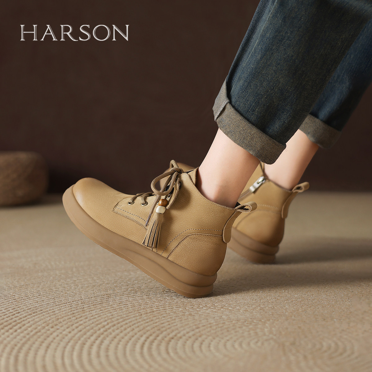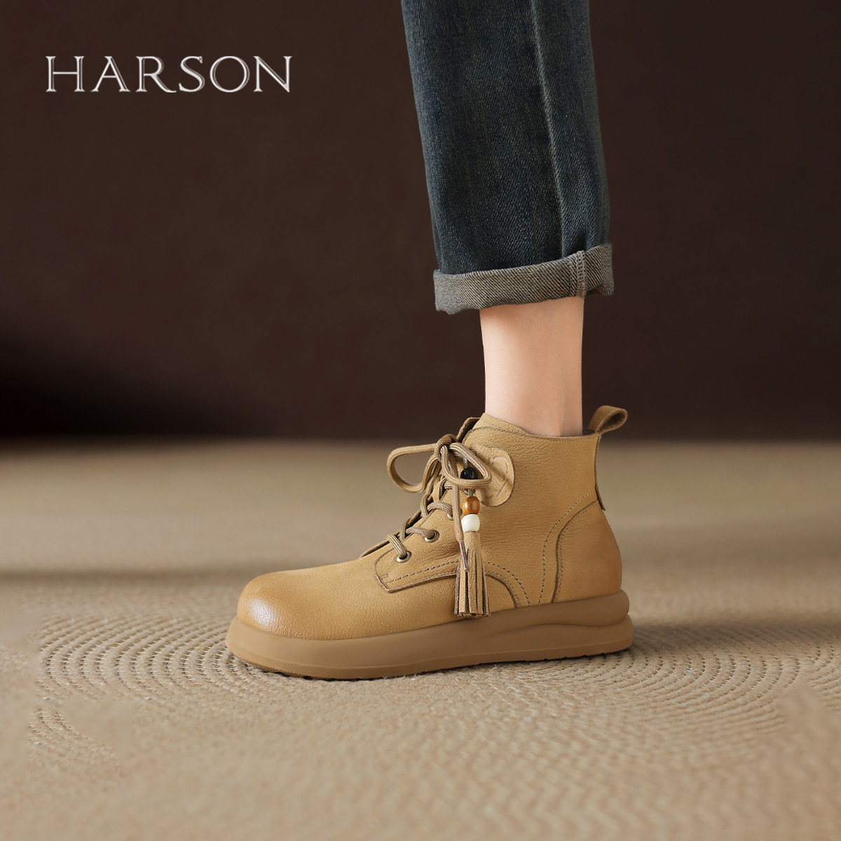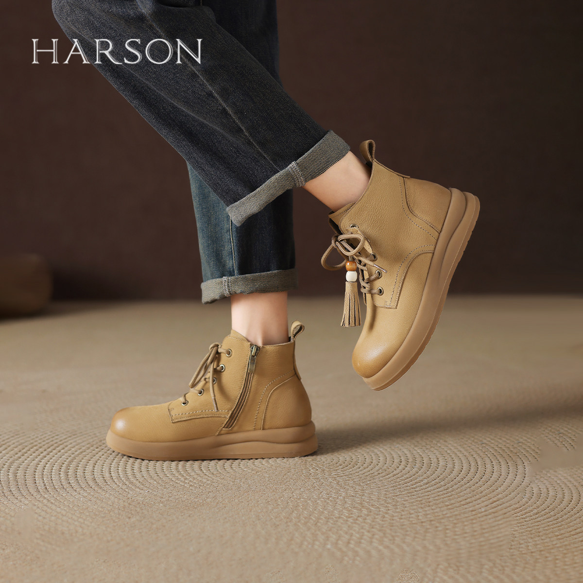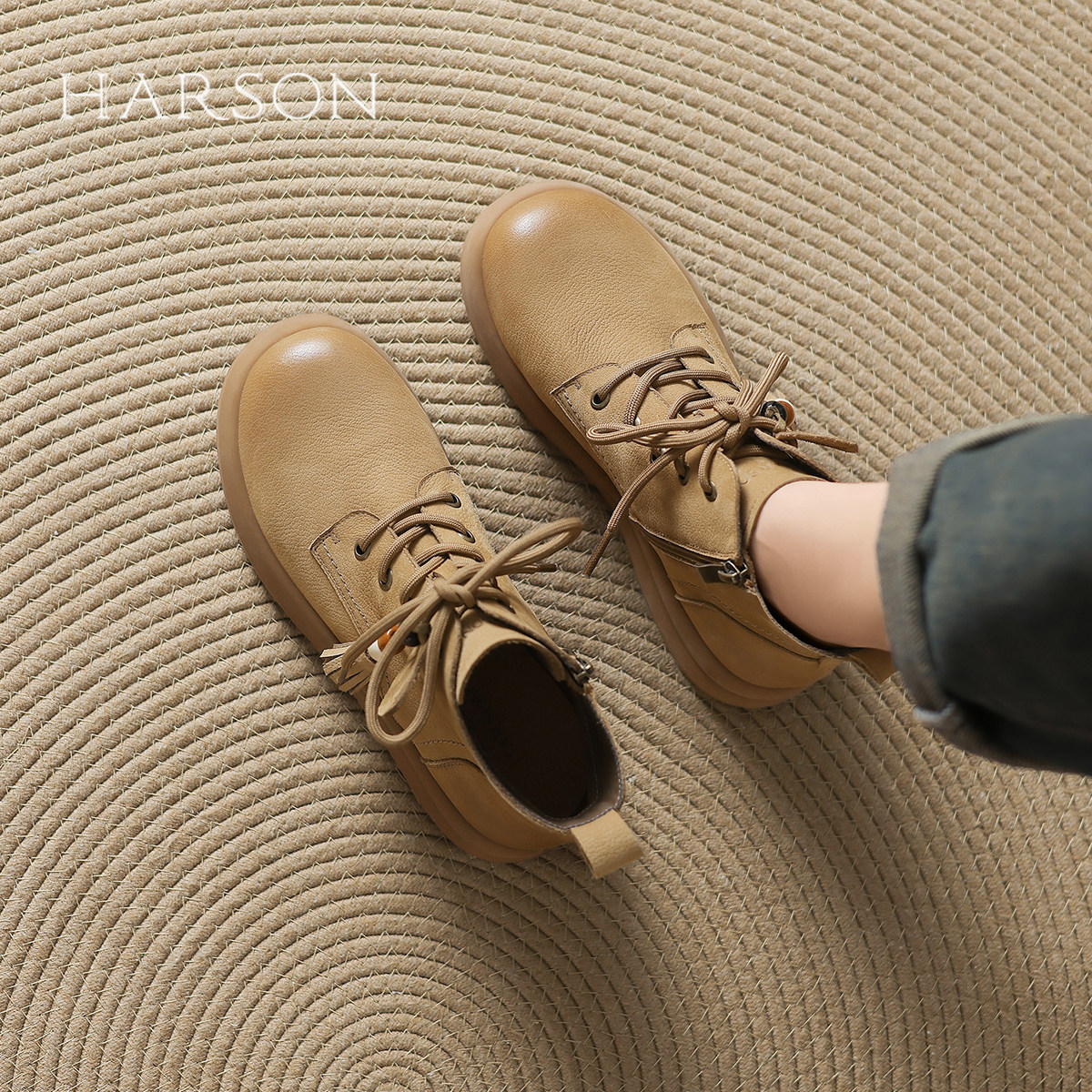 哈森真皮马丁靴女2025秋季新款复古英伦低帮厚底短靴圆头美拉德靴