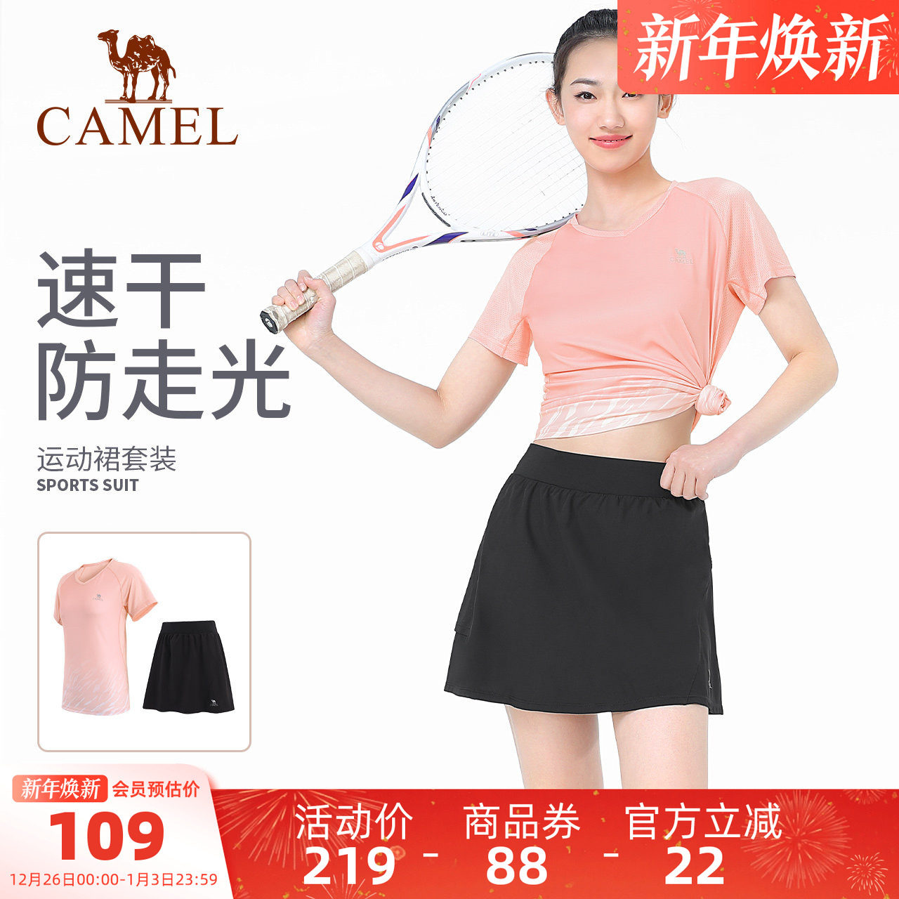 骆驼羽毛球服速干短袖裤裙吸汗瑜伽运动服跑步日常健身训练套装