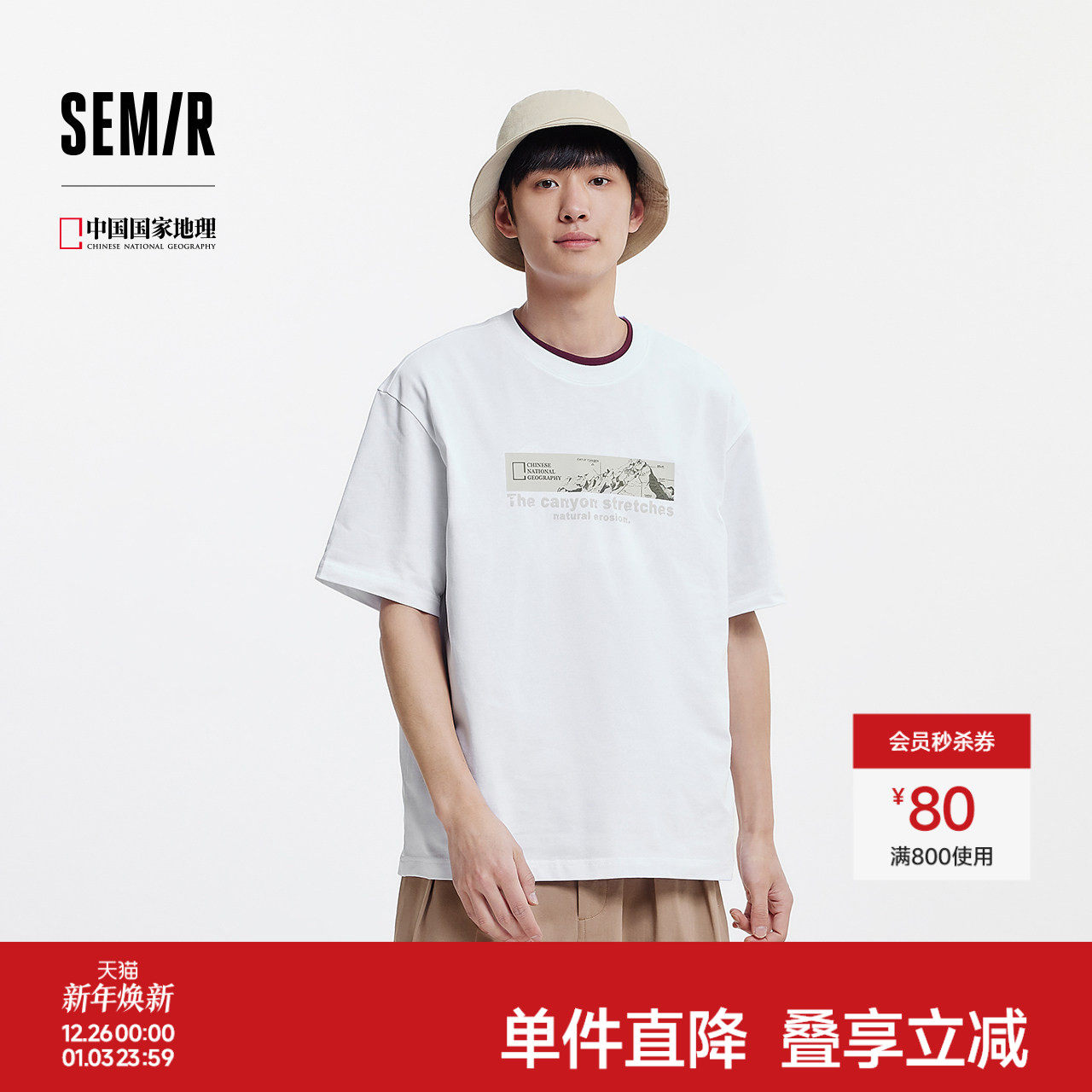[商场同款]森马中国国家地理系列短袖T恤男户外夏装宽松2025新款