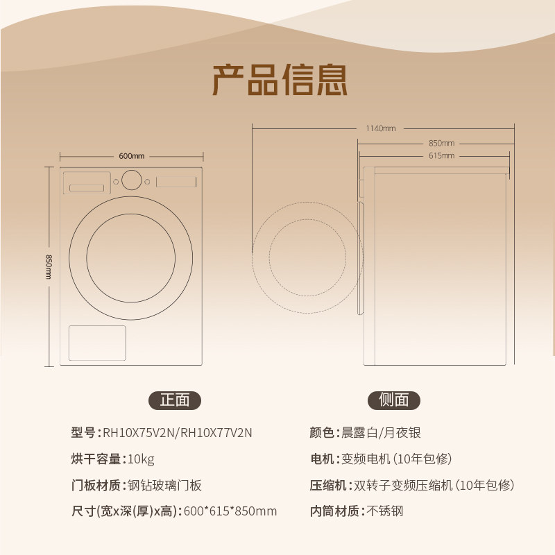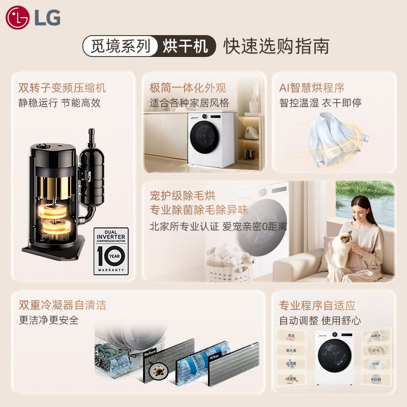 [觅境]LG双变频低温热泵10kg烘干机除菌除螨LG RH10X75V2N
