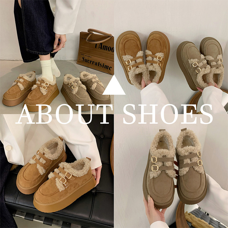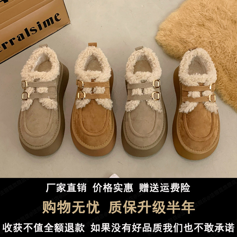 低帮厚底雪地靴女2025新款冬季懒人一脚蹬毛毛棉鞋加绒加厚女鞋子