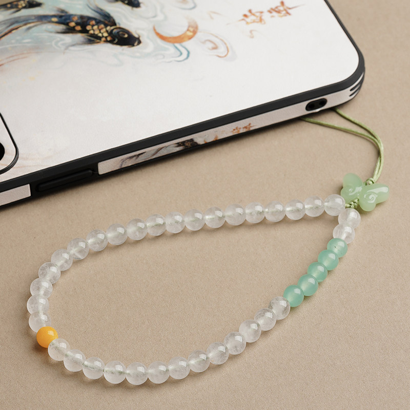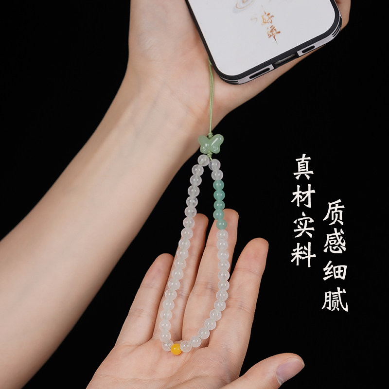 天然玉石白玉髓手机挂绳东陵玉小众简约手腕款手机链ccd相机挂饰