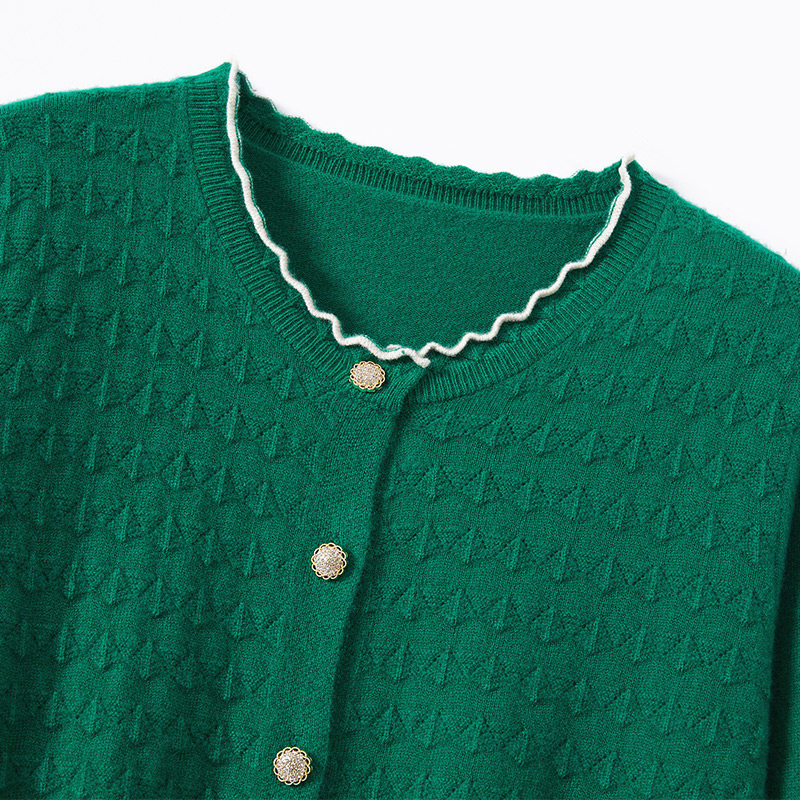 鄂尔多斯市断码羊绒开衫女春秋新款宽松毛衣外套翻领针织羊毛衫