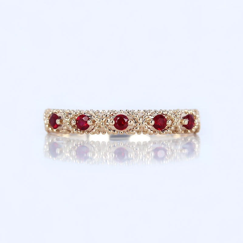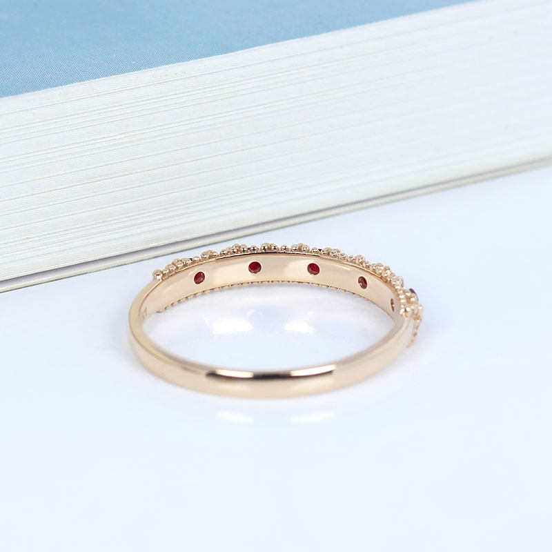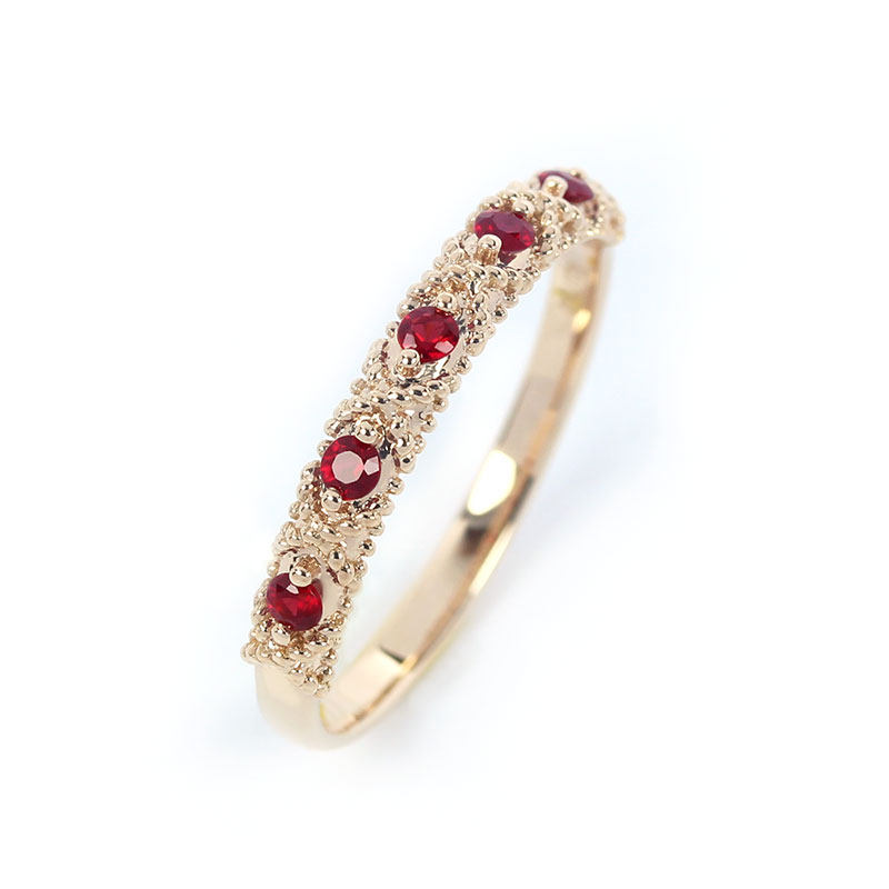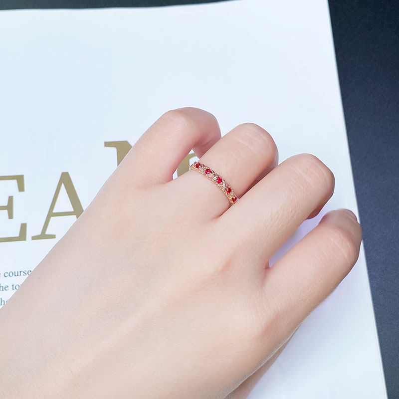 G18K玫瑰金天然鸽血红宝石巴洛克复古排戒 百搭叠戴尾戒手饰女款