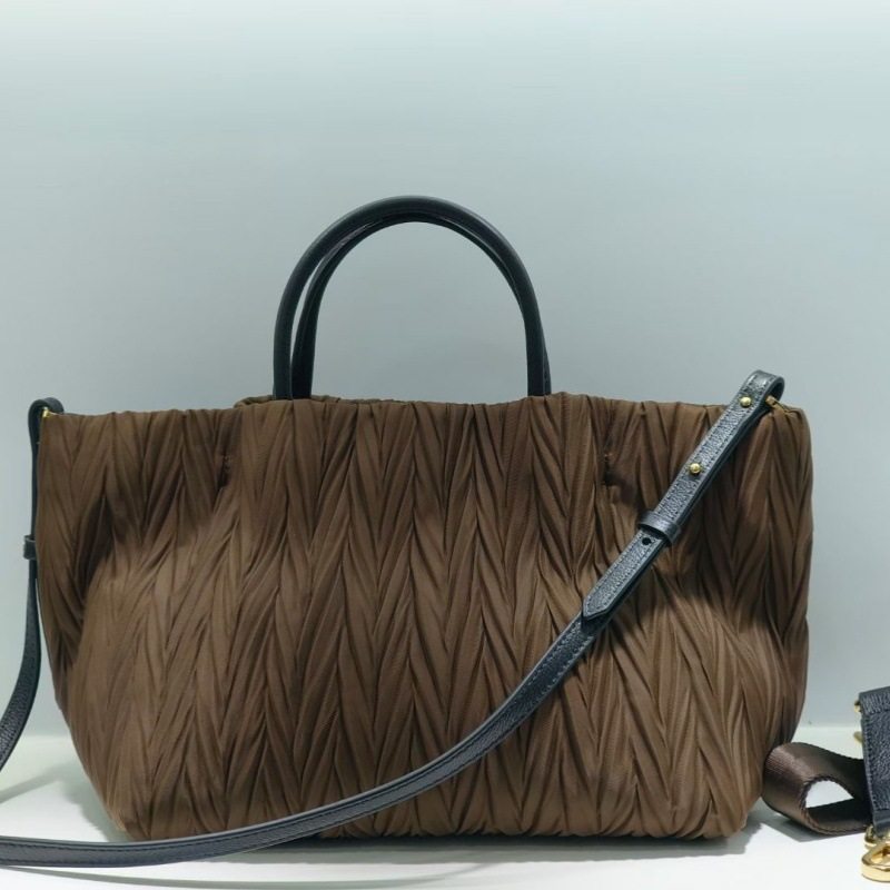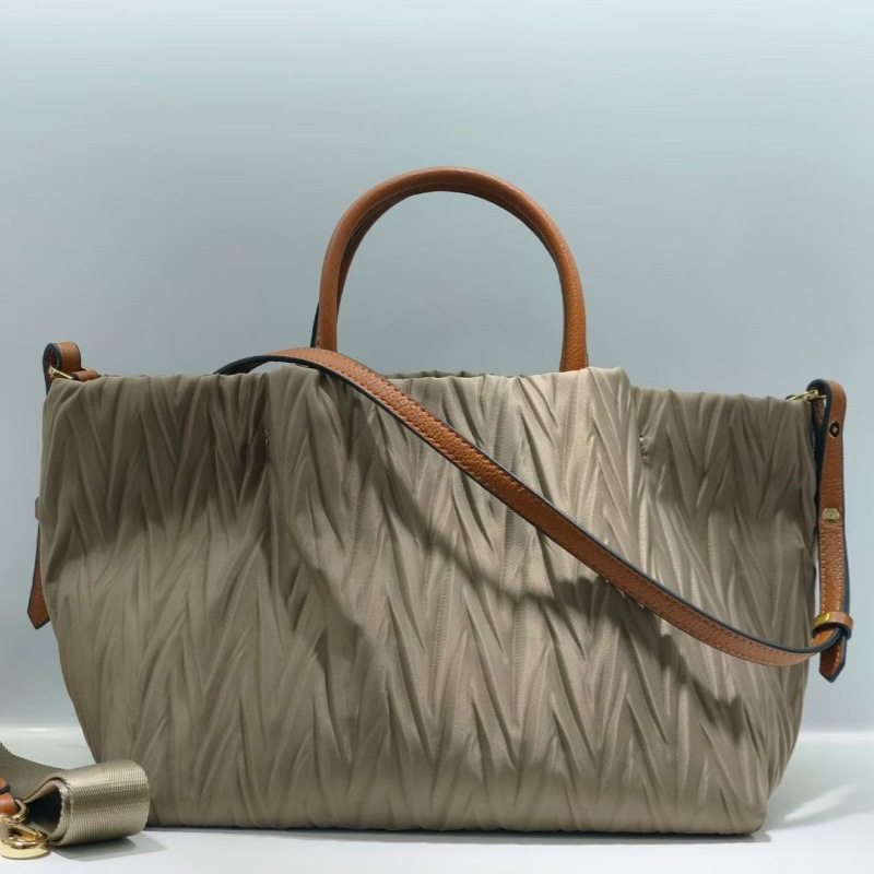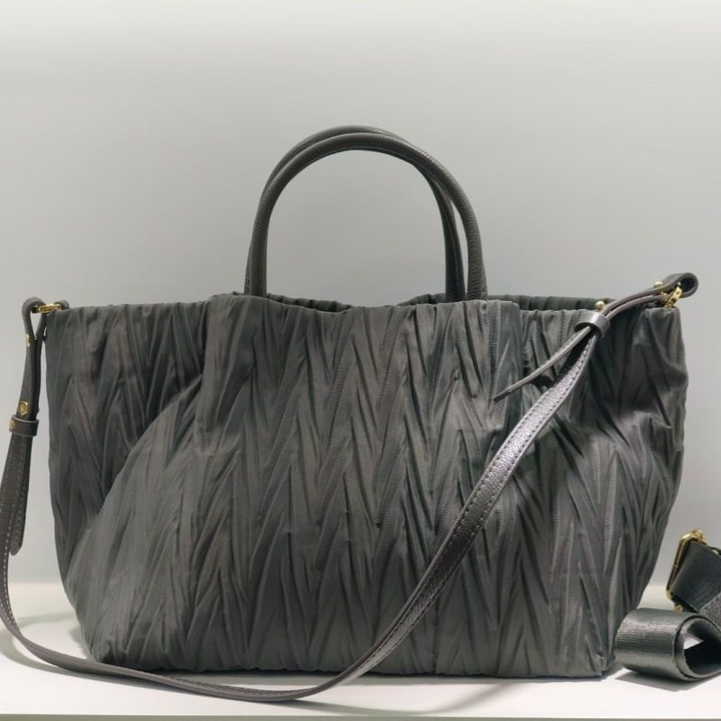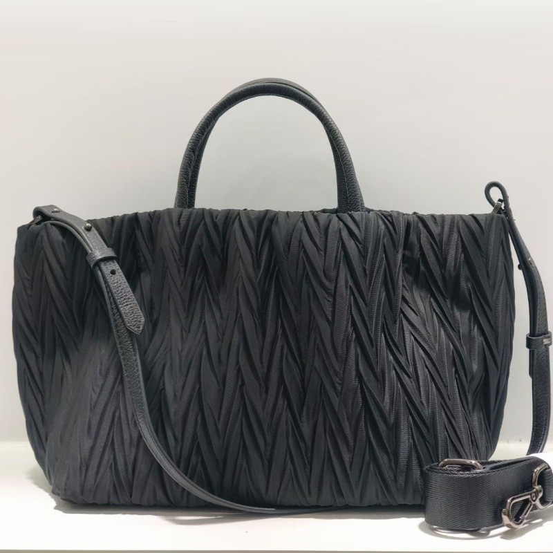 欧美风皱褶降落伞防水尼龙牛津布配牛皮单肩手提斜跨大容量饺子包