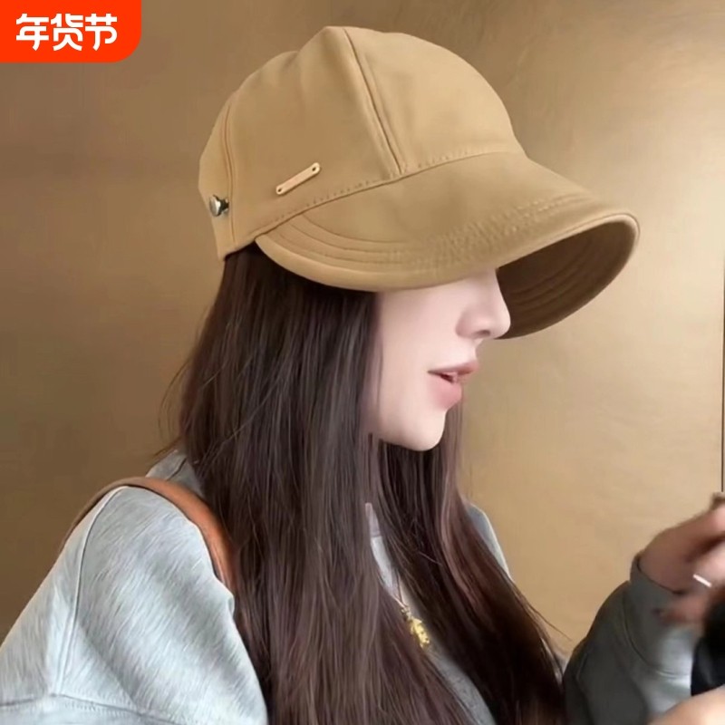 韩版加宽遮脸鸭舌帽子女春秋百搭显脸小渔夫帽明星同款休闲毛呢帽