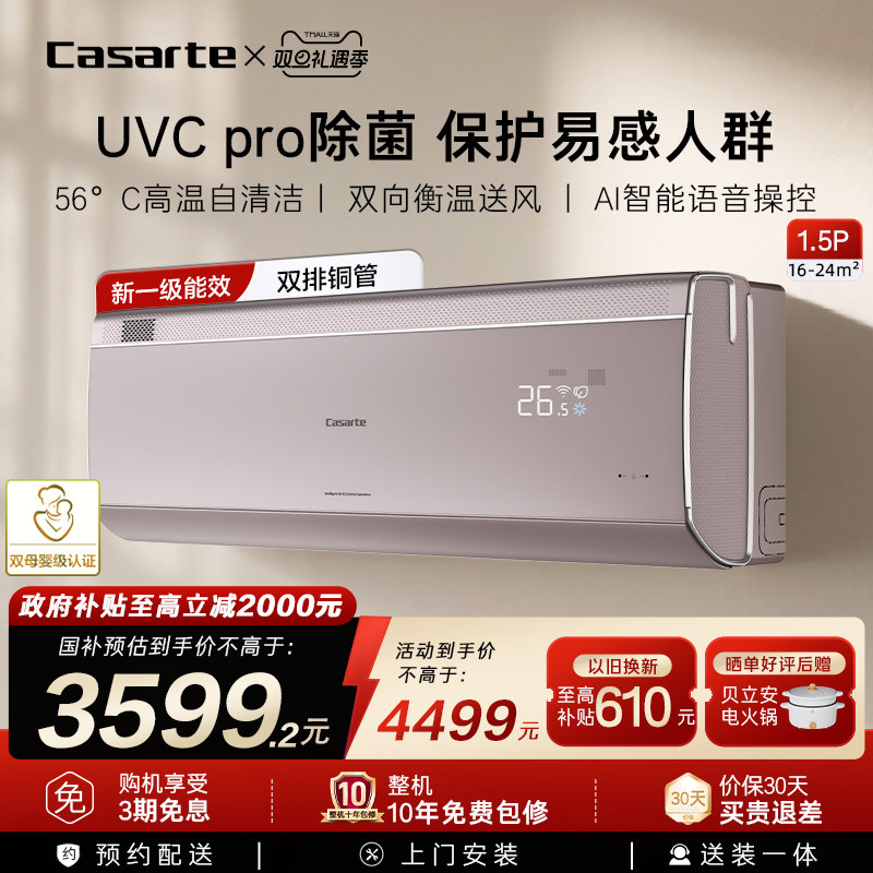 政府补贴卡萨帝揽光星悦空调挂机变频家用卧室冷暖除菌新1级1.5匹