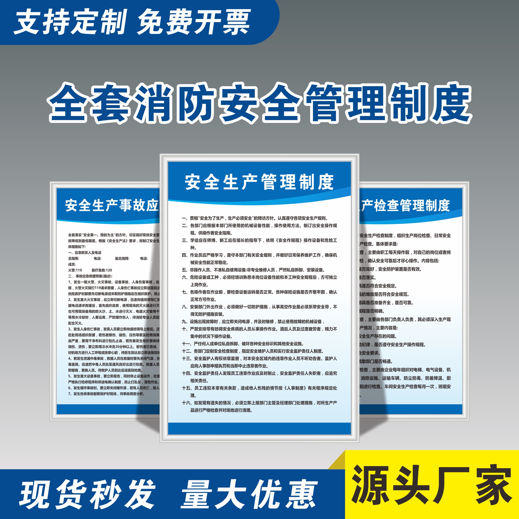 消防安全管理制度工厂车间安全生产制度牌仓库上墙kt消防标识标牌