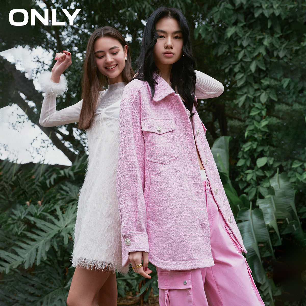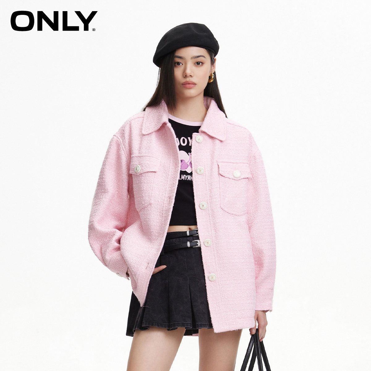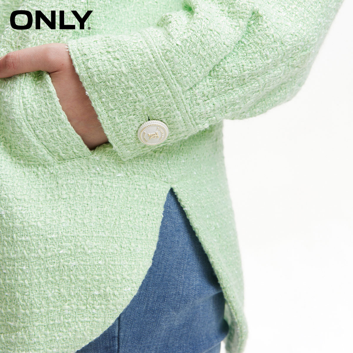 【ONLY奥莱】春季新款通勤风粗花呢单排扣翻领宽松外套女