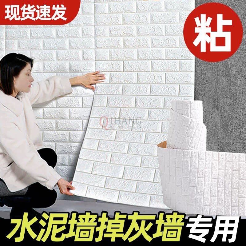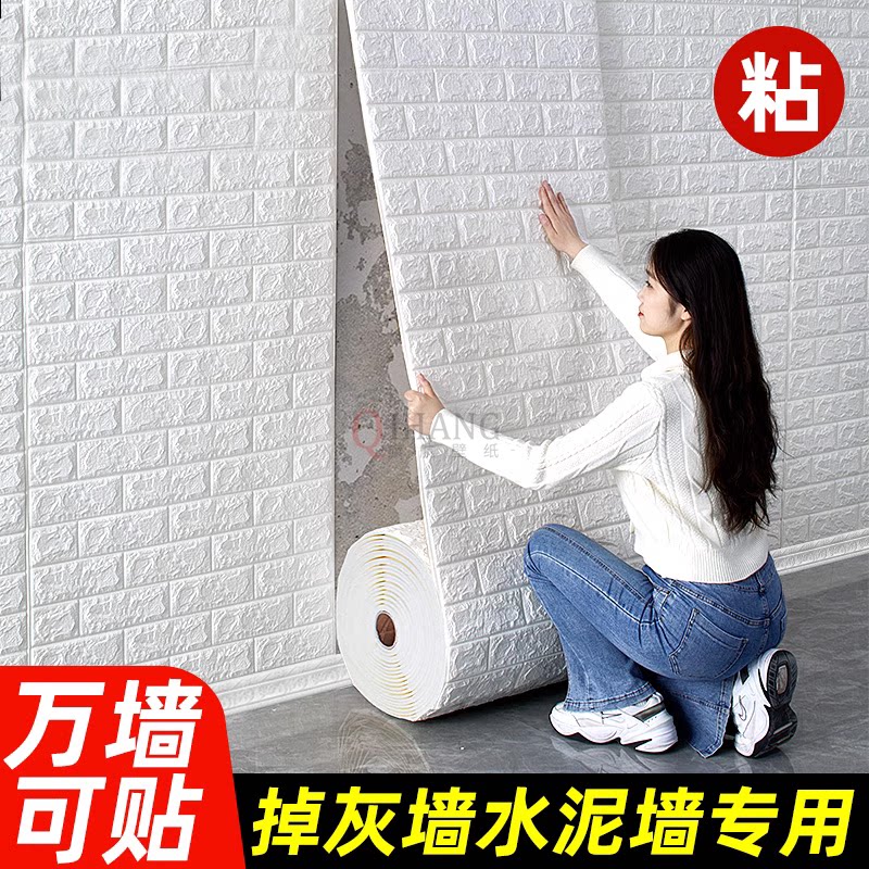 加厚自粘墙贴防撞泡沫砖防水翻新贴纸3d立体卧室软包墙壁纸镀铝箔