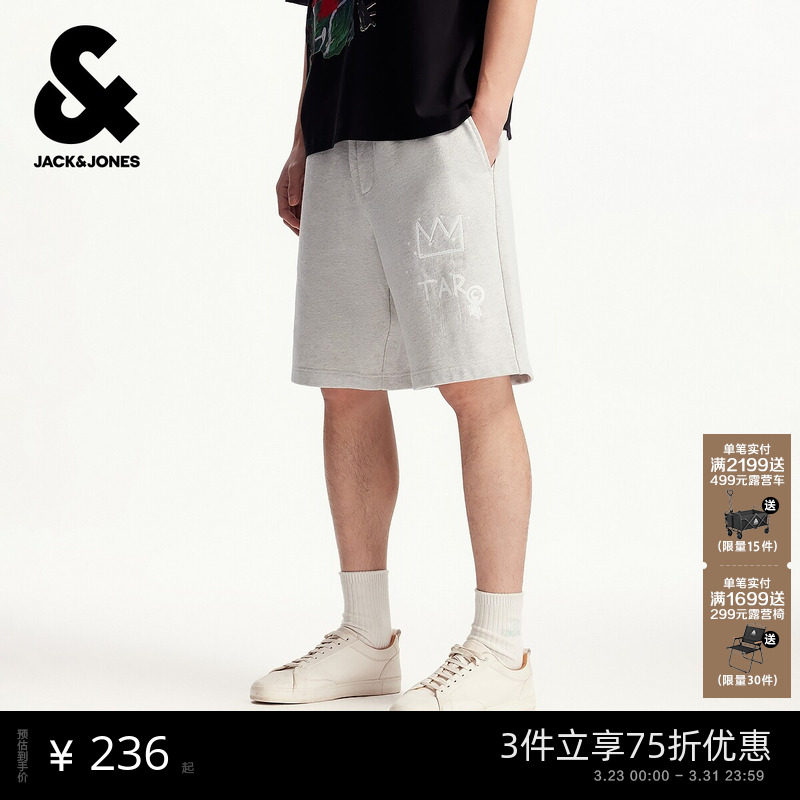 杰克琼斯男装BSQ联名春季新款潮流百搭图案刺绣舒适纯棉宽松短裤