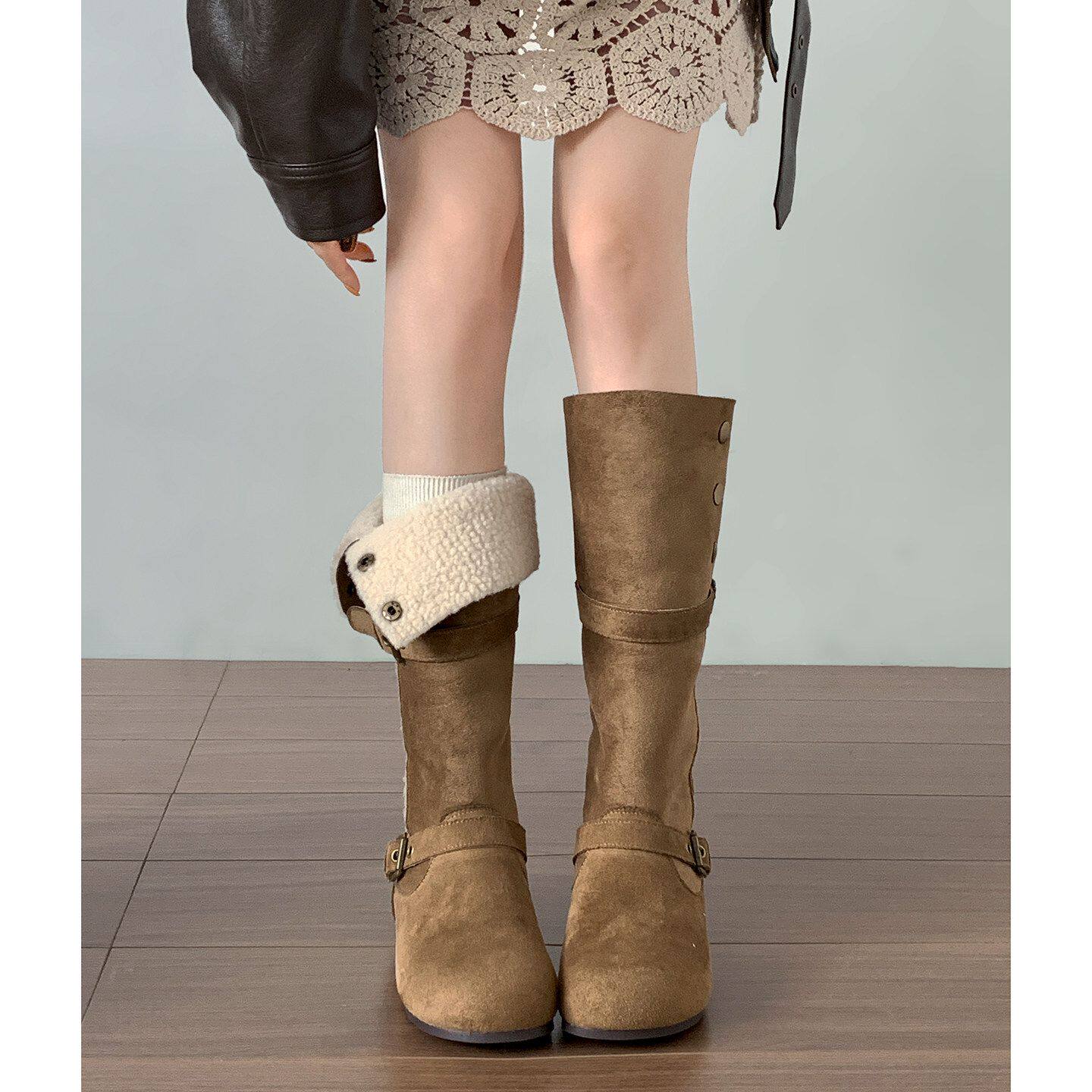 六点大叔小个子内增高两穿高筒靴长筒靴女厚底过膝显瘦绒面长靴子