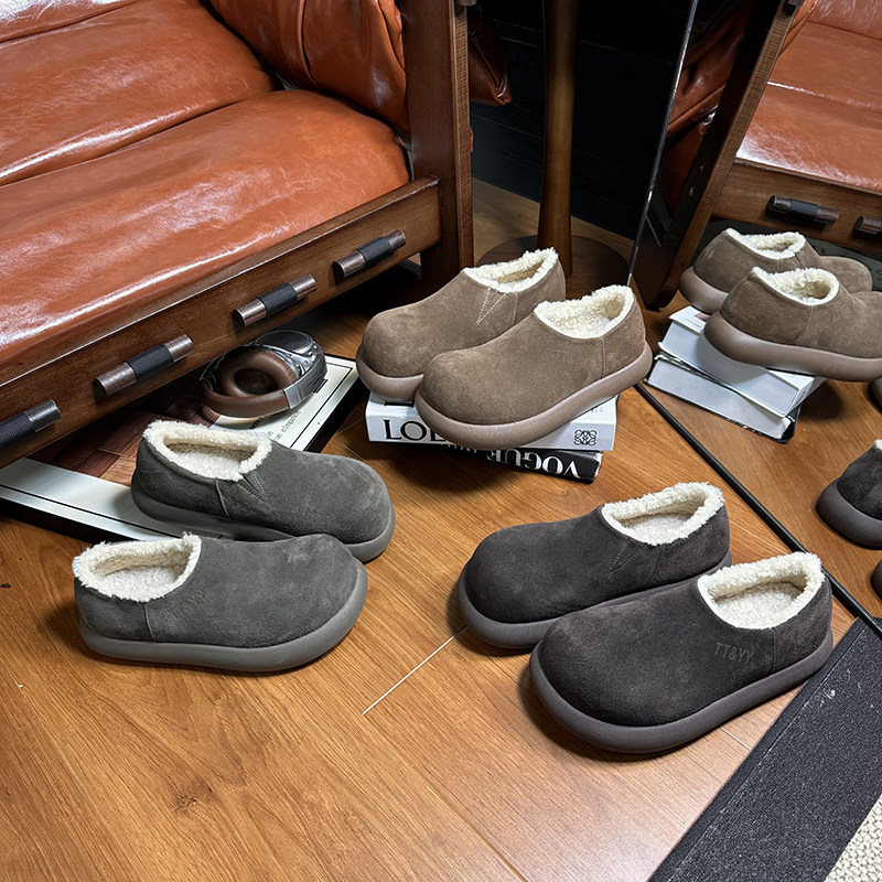 TATAFOCUS~加绒毛毛鞋韩版圆头皮带扣2025冬季新款勃肯鞋女35-28