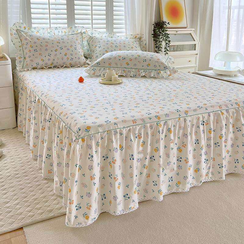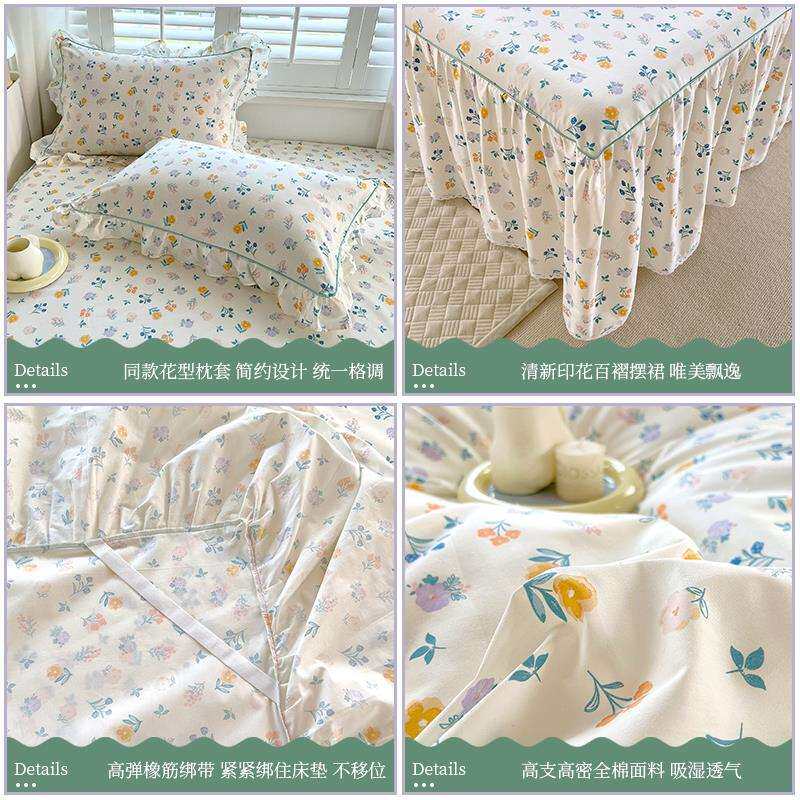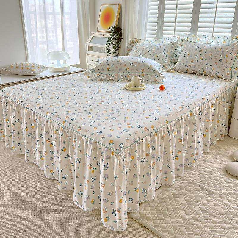 夏季纯棉床裙式床罩单件防尘保护套1.5米1.8床单床垫防滑床品
