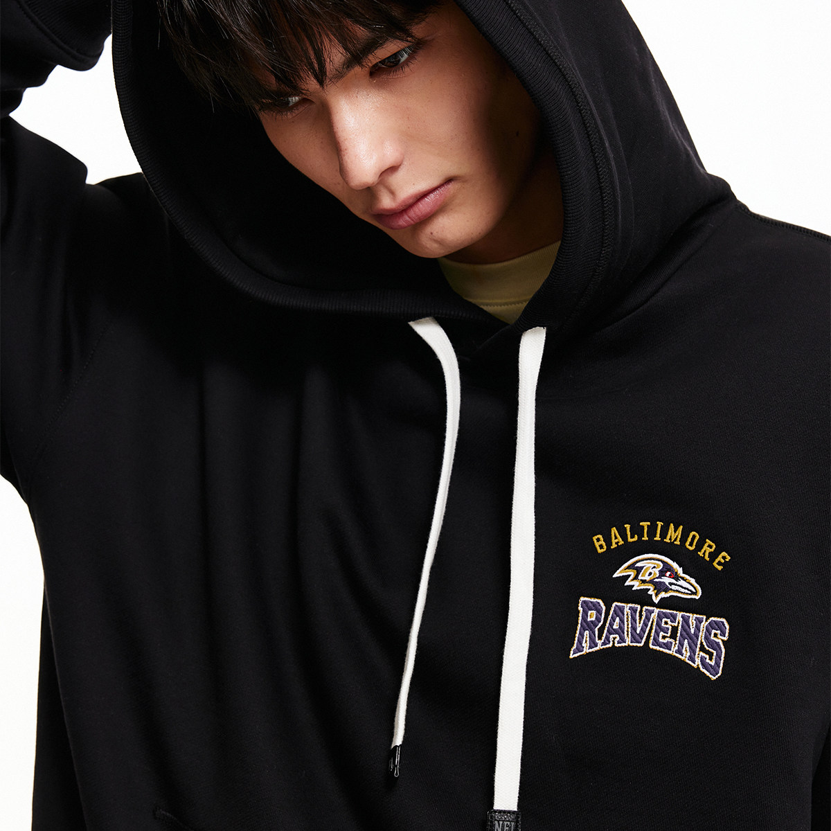 连帽抽绳;NFL巴尔的摩老鹰队刺绣胶印图案