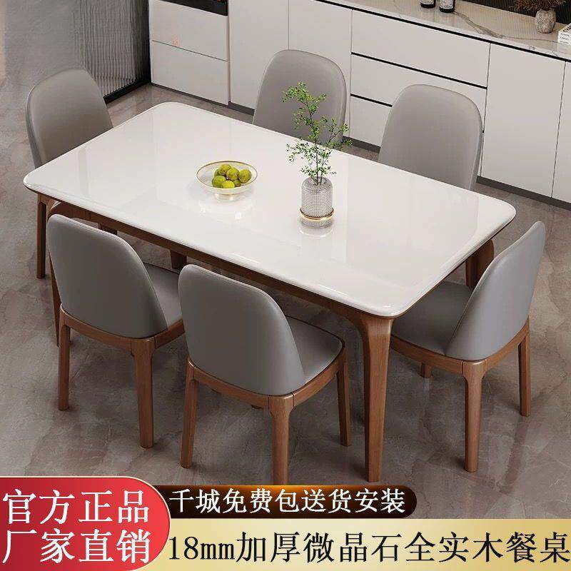 微晶石实木餐桌椅组合家用小户型超晶石长方形现代简约大理石桌子