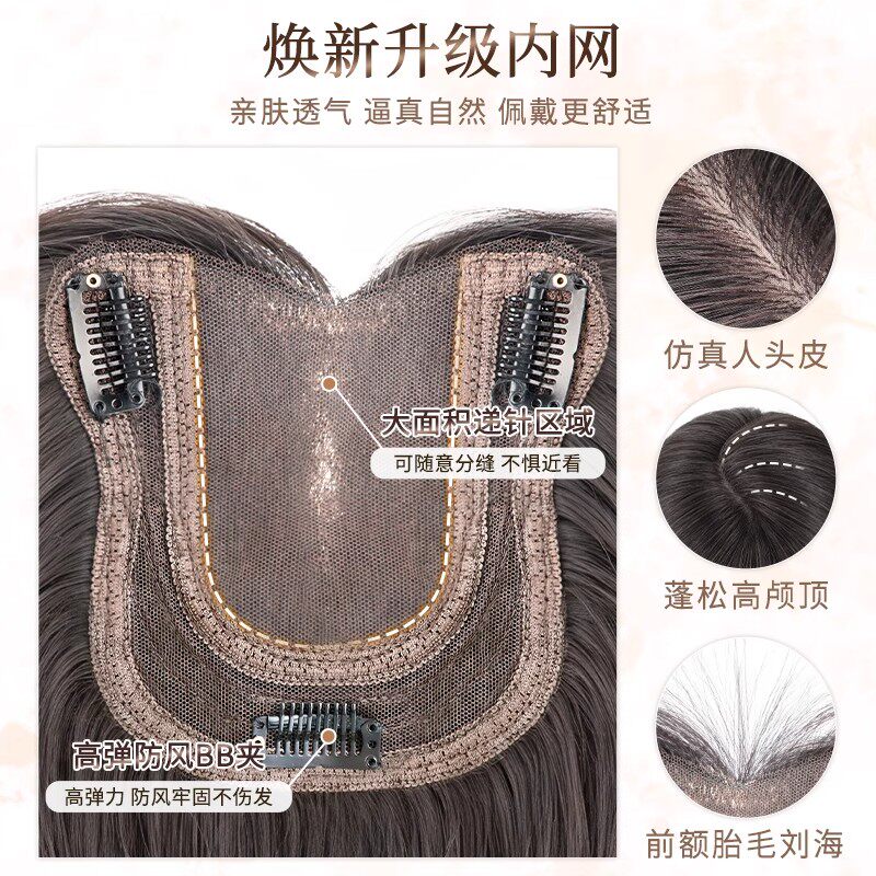 不用戴发网假发女片头顶补发增发量蓬松高颅顶遮白发大波浪长卷发