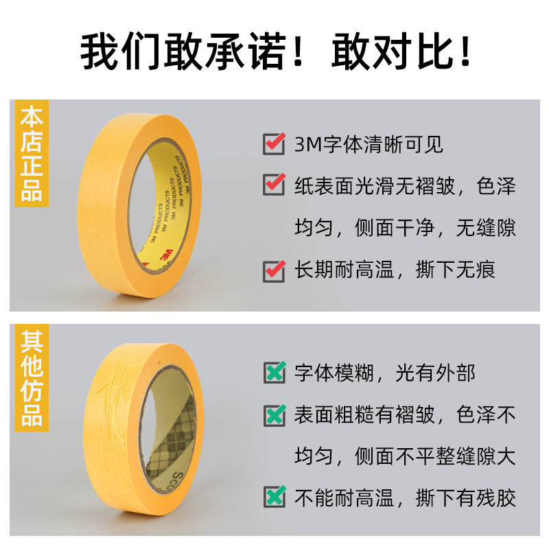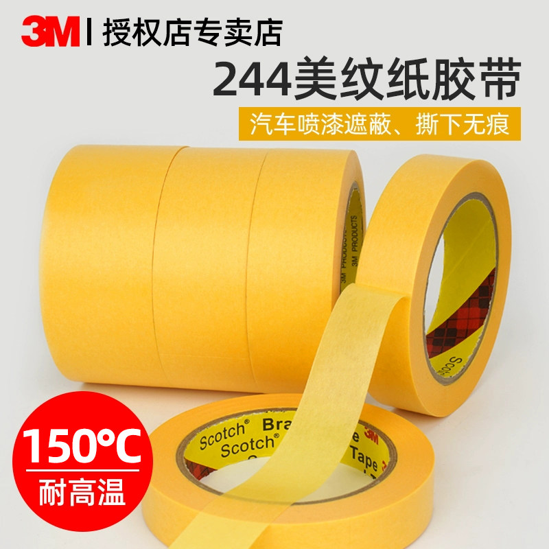 正品3M244美纹纸胶带无痕耐高温汽车烤漆喷漆模型遮蔽分色胶纸装修美缝美术生专用素描贴边和纸可手撕不残留