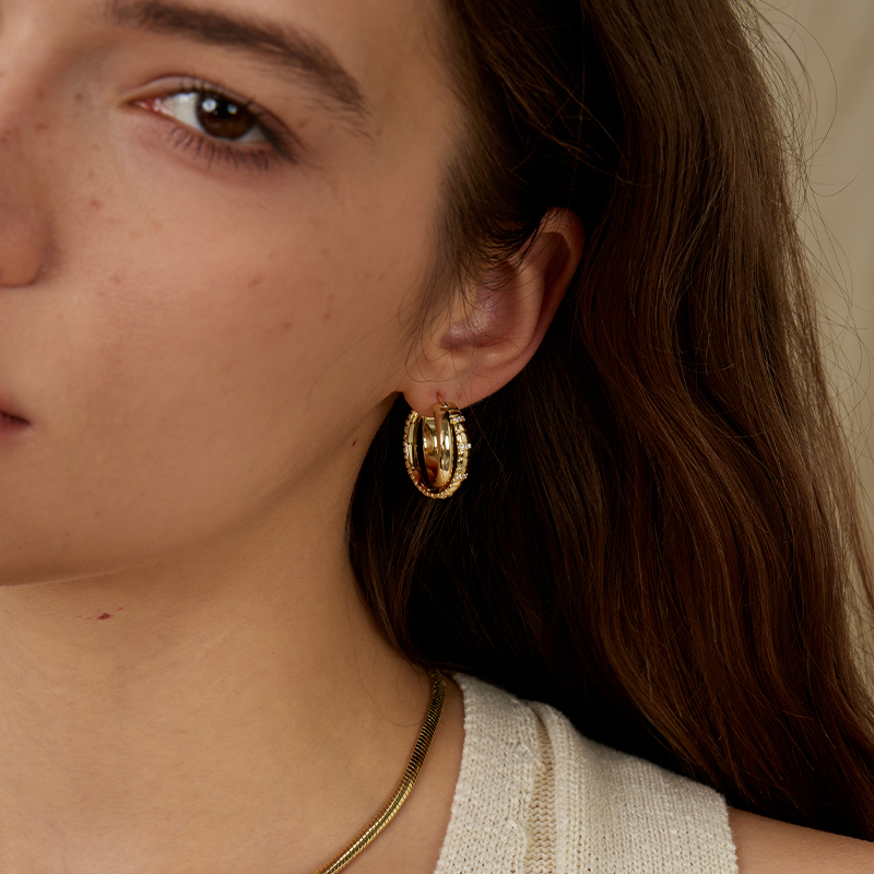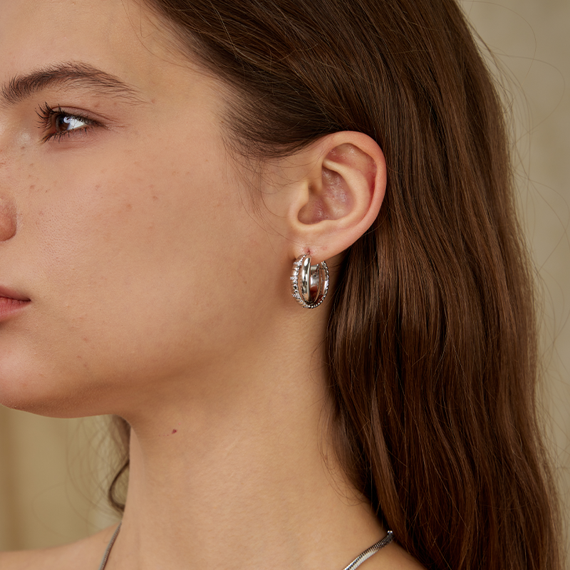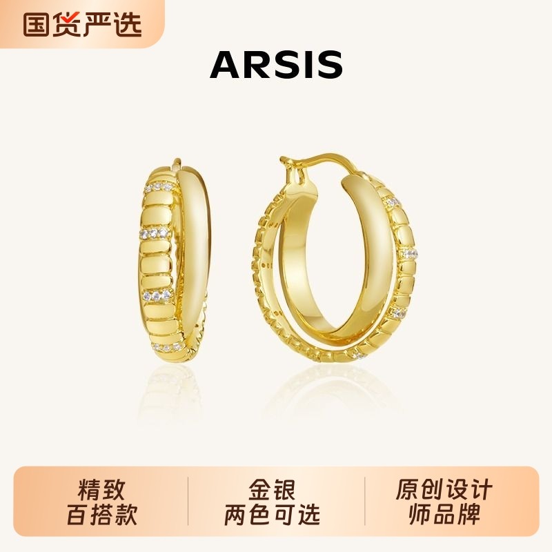 明星同款ARSIS自由搭配蛇骨双层耳圈耳钉百搭轻奢耳饰银耳环精致
