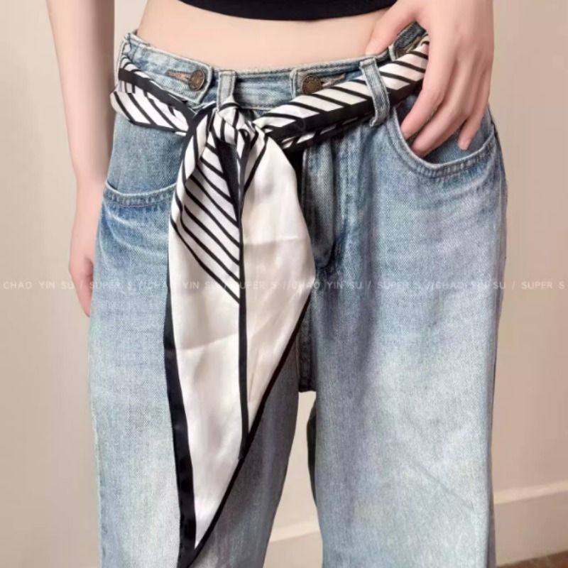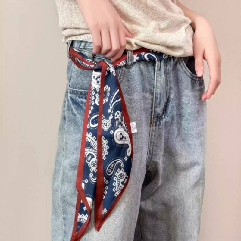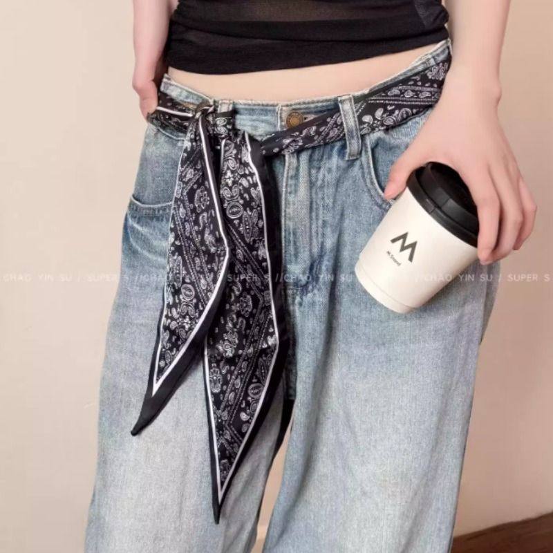 明星同款~黑色腰果花护颈长条丝巾围巾女牛仔裤腰带丝带腰间配饰