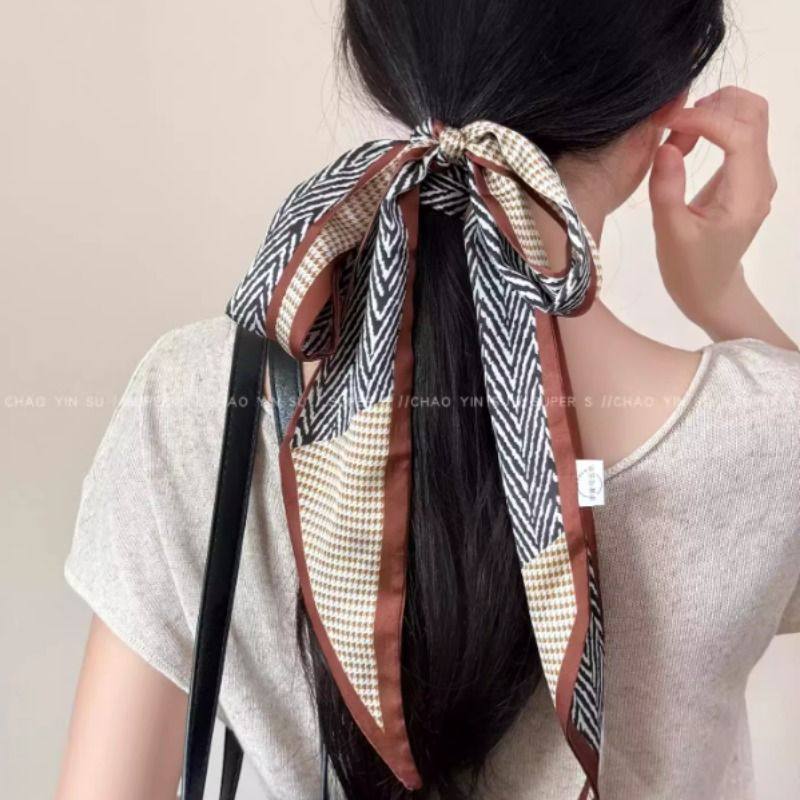 棕色波点丝巾印花高级百搭配饰系脖女2025年新款发带绑发长条围巾